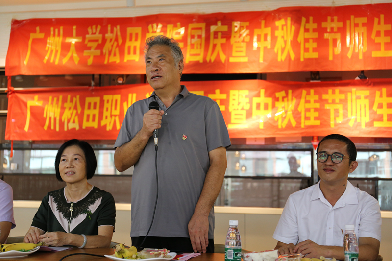 桂香万里,中秋意浓。值此国庆节和中秋节双节来临之际,10月1日下午,广州大学松田学院、广州松田职业学院在学校第三食堂,联合举办国庆暨中秋佳节师生联欢活动。我校校长庞永师、广州松田职业学院党委书记张毅,以及我校党委副书记裴九雄出席了联欢活动,松田“两院”百余名留校的师生代表参加了活动。