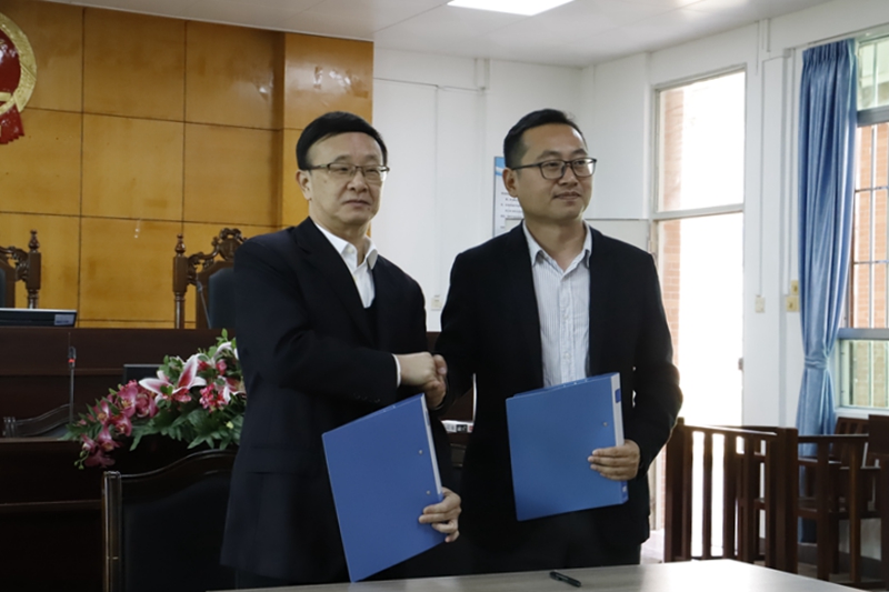 座谈会后,共建单位的领导在我校领导和法政系负责人的陪同下,参观了法政系模拟法庭等实践场所。随后,在师生代表的见证下,法政系分别与共建单位签署了合作协议。