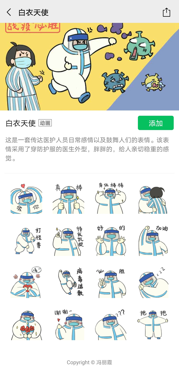 冯丽霞的《白衣天使》已在微信表情包上线