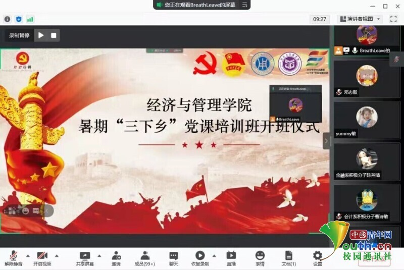 图为实践团利用腾讯会议平台开展云党课“开班式”。 中国青年网通讯员 何芯榕 供图