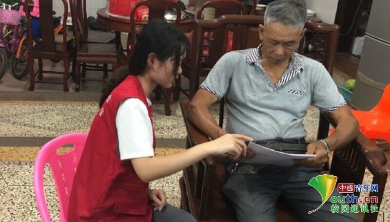 图为实践团成员廖舒婷与社区志愿者一同探访关怀退伍老兵。中国青年网通讯员廖舒婷摄