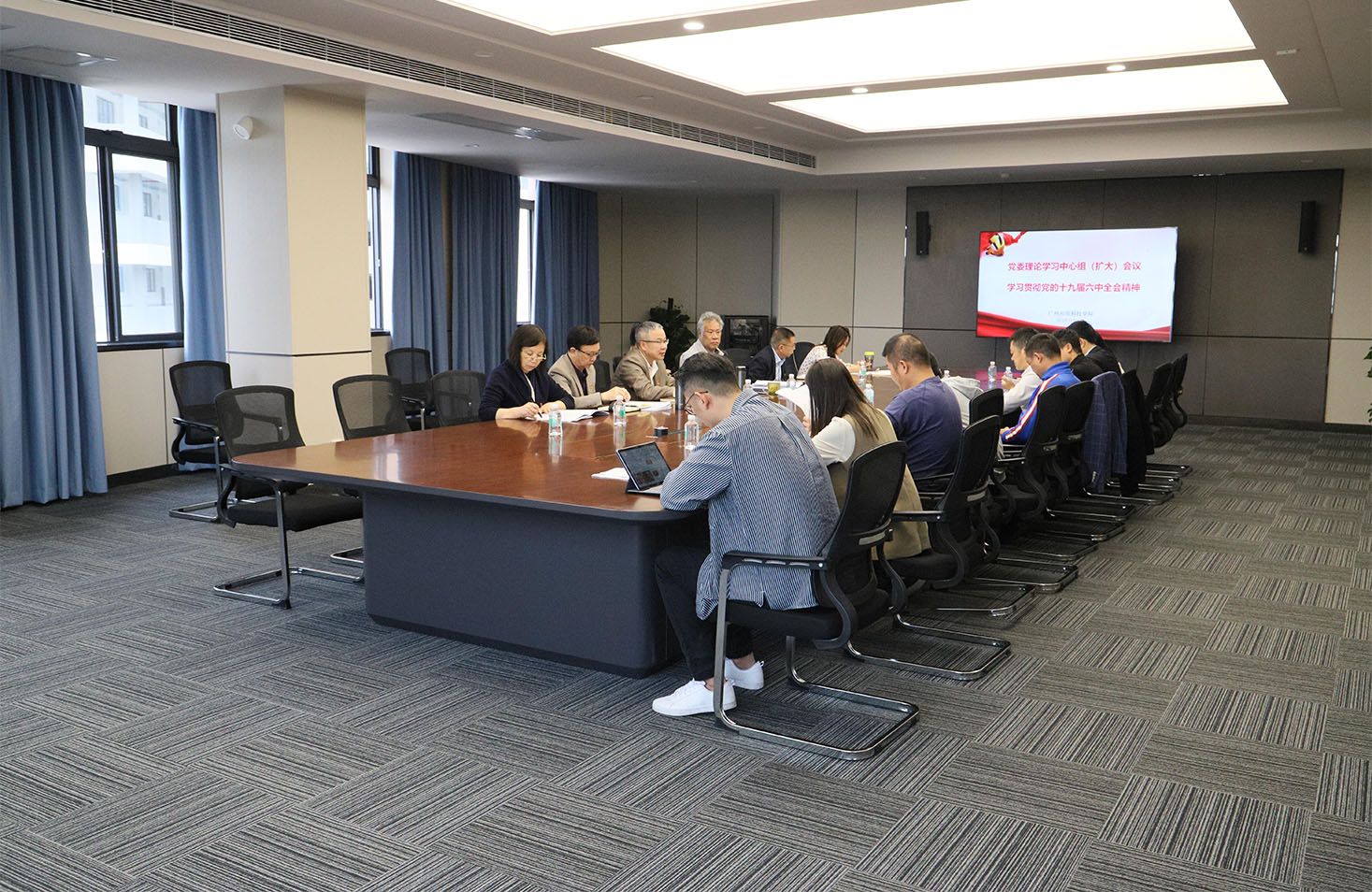 董事长、校长、党委副书记刘剑锋学习后表示,十九届六中全会是在建党百年之际召开的一次具有重大历史意义的会议,全面总结了党的百年奋斗重大成就和历史经验,体现了我们党重视和善于运用历史规律的高度政治自觉,体现了我们党牢记初心使命、继往开来的自信和担当。他表示,学习贯彻党的十九届六中全会精神,必须做到学思践悟:一是要深刻认识十九届六中全会的历史意义,从回顾历史、总结经验中汲取继续前进的智慧和力量,走好新时代的赶考路;二是要全面掌握十九届六中全会精神,深刻领会党的百年奋斗的“十个坚持”的历史经验内涵,聚焦坚持理论创新,深化对新时代党的创新理论的认识和运用;三是要结合我校“立足大湾区,培养高素质应用型人才;站在新起点,建设高水平应用型大学”的办学定位与目标,切实将理论学习与事业发展融会贯通,做好“十四五”规划,履职尽责,以时不我待的紧迫感和使命感努力开创学校各项工作新局面。他强调,学习宣传贯彻十九届六中全会精神是当前我校的一项重要工作,要通过各种形式做好阵地宣传,切实营造浓厚的学习氛围。