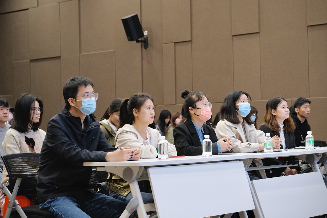 李盼以《大学与成长》为题,从自身的求学、择业和职场经历,分享了如何珍惜大学生活、怎样做好择业准备、积极迎接职场挑战、实现人生理想的方法与意义。