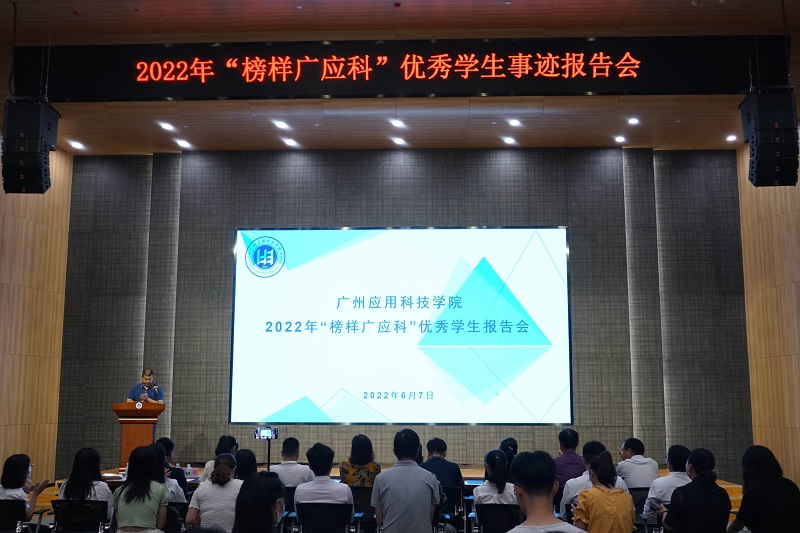 6月7日下午,2022年“榜样广应科”优秀学生报告会在肇庆校区行政中心一楼报告厅举行。党委副书记、纪委书记刘志新副校长出席报告会并讲话,学生处处长胡斌、团委书记郭振、外国语学院党委书记周育山、美术创意学院党委书记邓铨、法政学院党委书记林庆佳、人工智能与电气工程学院党委书记余晓锣、经济与管理学院党委副书记王世宇、体育科技学院党委副书记王珊珊,以及各学院辅导员、学生代表等人参加了报告会。报告会由学生处处长胡斌主持。