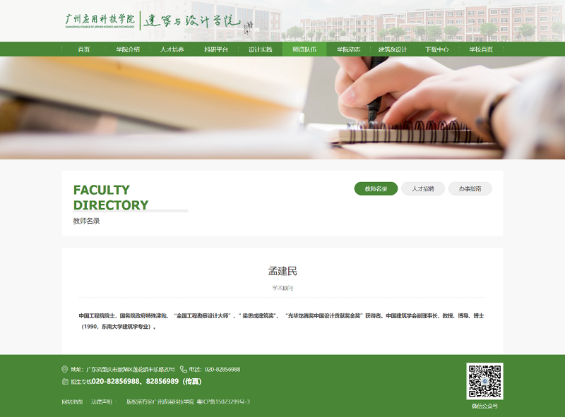 7月14日,我校举办建筑与设计学院组织的“广东省工程研究中心”申报学术研讨会,中国工程院院士、全国工程勘察设计大师、我校建筑与设计学院学术顾问孟建民教授,国务院政府特殊津贴获得者、中国民居建筑大师张玉坤教授应邀出席并作指导,我校董事长、校长刘剑锋教授出席研讨会讲话,我校建筑与设计学院院长曹伟教授、博士生导师,校企合作导师、高级工程师王欢(博士生在读,导师:曹伟院长),杨远峰教授级高工(博士生在读,导师:曹院长)以及其他专任老师参加会议。