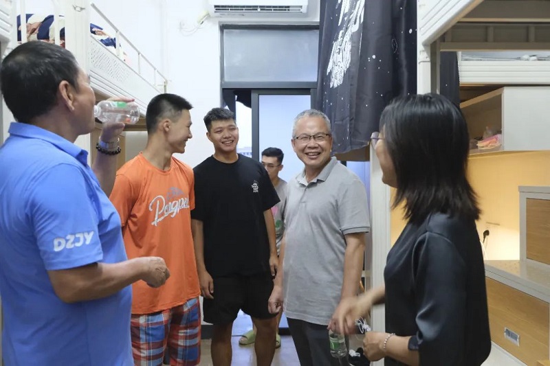 当天晚上,董事会、学校领导分别在相关部门的陪同下,走进新生宿舍,“从哪里来?一路辛苦了!”“欢迎来到广州应用科技学院!”“祝你拥有美好的大学时光!”在新生慰问期间,董事会及学校领导关切地询问新生路途情况,并送上亲切的问候与祝福。“学校的迎新路线设计得很便捷”“学校很大很漂亮”“报考时还在想着图书馆什么时候修好,没想到今天来到学校,看到图书馆已经这么漂亮,可以学习了。”“商业街和饭堂都很好,生活很方便”,普通专升本新生同学在与学校领导的交流中,对自己的这个“新母校”赞不绝口。