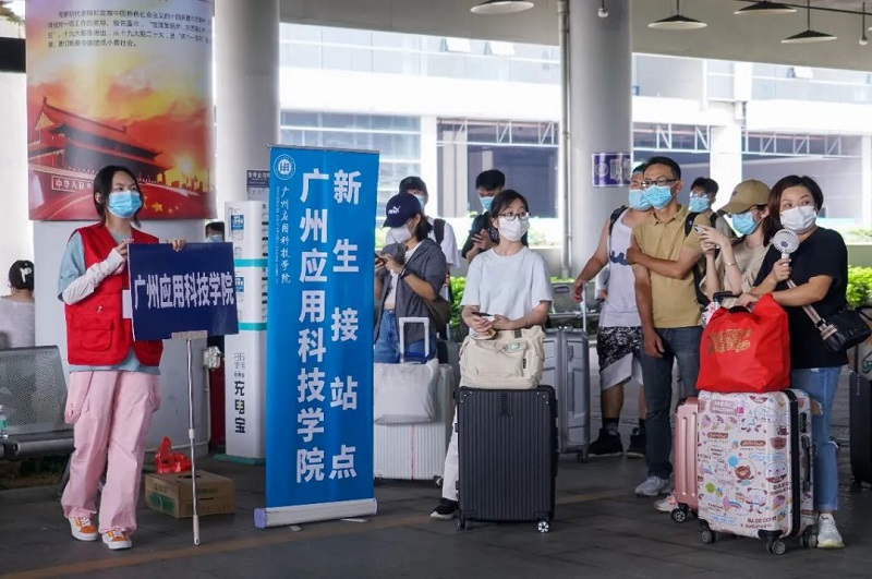 报到当天,学校安排多辆大巴在肇庆粤运汽车总站、肇庆火车站、肇庆东站(高铁)、鼎湖东站(城轨)暖心等候新生。接待新同学们乘坐学校安排的车辆无缝链接来校报到注册。