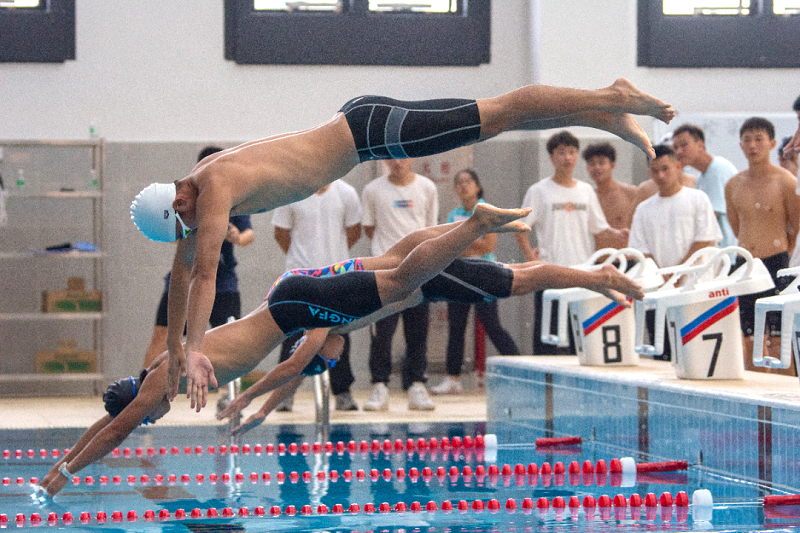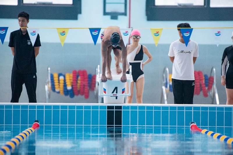 乘风破浪“泳”争先,力争上游创佳绩。本次比赛共有8个学院、76人名学生参赛。团委书记郭振,体育科技学院院长张军教授、副院长王会娟、党委书记郝舒新等领导出席并观摩比赛。在首届游泳赛赛场,选手们在各个项目比赛中依次登场,跃入泳池,激起层层浪花,高亢的比赛氛围,也瞬间让整个游泳馆为之沸腾!