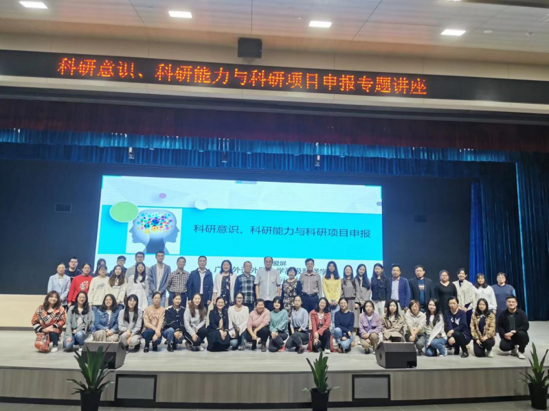 3月7日下午,广东外语外贸大学博导韩景泉教授和莫爱屏教授在广州应用科技学院学院图书馆三楼小礼堂先后进行了题为“名词词组中的内外修饰语”和“高校青年教师科研意识的培养与科研项目申报”的学术讲座。讲座由外国语学院副院长单新荣(主持工作)和贾绍东教授主持,外国语学院全体学生和所有英语专任教师都参加了此次讲座。