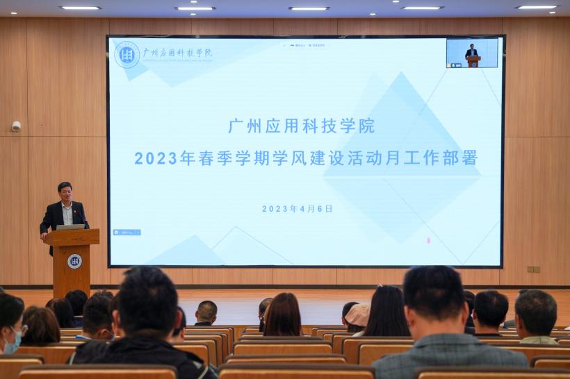 为落实立德树人根本任务,助力学校教学高质量发展,促进学生健康成长和全面发展,引导学生践行“博学笃行,经世致用“的校训,4月6日,我校召开2023年春季学期学风建设活动月工作部署会议。校长刘剑锋、党委书记王永云、常务副校长吴舸、副校长刘志新等校领导出席会议,各二级学院学生工作负责人,以及学生处、教务处、党委宣传部、校团委、心理健康中心负责人,全体辅导员和学生代表参加会议。会议由党委副书记、副校长刘志新主持。