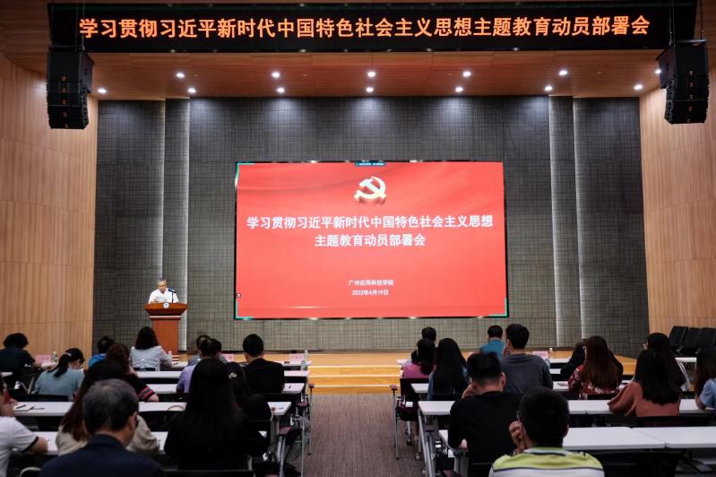 王永云书记在动员中指出,今年是全面贯彻落实党的二十大精神的开局之年。习近平总书记在学习贯彻习近平新时代中国特色社会主义思想主题教育工作会议上发表的重要讲话,高屋建瓴、视野宏大、思想深邃、内涵丰富,为开展主题教育指明了方向、提供了根本遵循。王永云书记强调,一是要提高政治站位,充分认识主题教育的重大意义。深入开展学习贯彻习近平新时代中国特色社会主义思想主题教育,是党中央为全面贯彻党的二十大精神、动员全党同志为完成党的中心任务而团结奋斗所作出的重大部署。二是要深刻领会思想,牢牢把握主题教育的目标要求。全校上下要深入学习领会习近平新时代中国特色社会主义思想的科学体系、丰富内涵、精神实质、实践要求。我们开展主题教育要牢牢把握“学思想、强党性、重实践、建新功”的总要求,坚持学思用贯通、知信行统一。三是要全面抓好落实,扎实推进主题教育的重点举措。按照党中央有关工作安排,这次主题教育不划阶段、不分环节,学校要全面落实重点措施,把理论学习、调查研究、推动发展、检视整改贯通起来,有机融合、一体推进,全力抓好落实。四是要强调责任担当,切实加强主题教育的组织领导。严格落实责任,突出以上率下,注意统筹兼顾,做好宣传引导,做好有序推进。王永云书记表示,开展好本次主题教育,是当前学校党委的首要政治任务,是全校党员干部政治生活中的头等大事。要紧盯具体目标,坚持目标引领和问题导向相结合,以具体目标为牵引,以解决问题为抓手,推动各项任务落实落地,确保主题教育沿着正确方向积极推进。努力把主题教育成效转化为落实学校“十四五”发展规划纲要、推动学校迎接本科教育教学合格评估、建设高水平应用型大学的强大动力,努力为实现中华民族伟大复兴、推进建设中国式现代化的广东奉献广应科力量。
