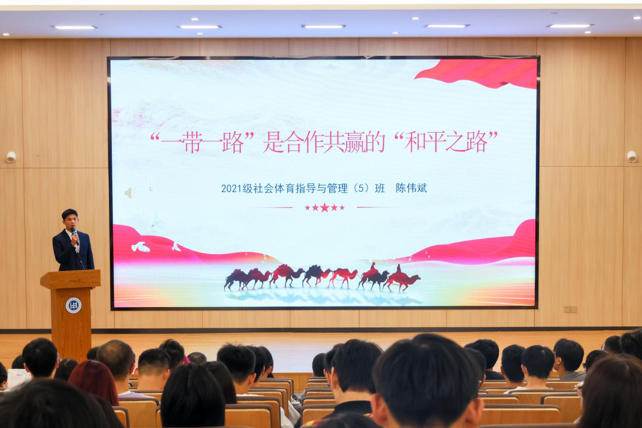 陈伟斌同学作“一带一路”是合作共赢的“和平之路”主题宣讲。
