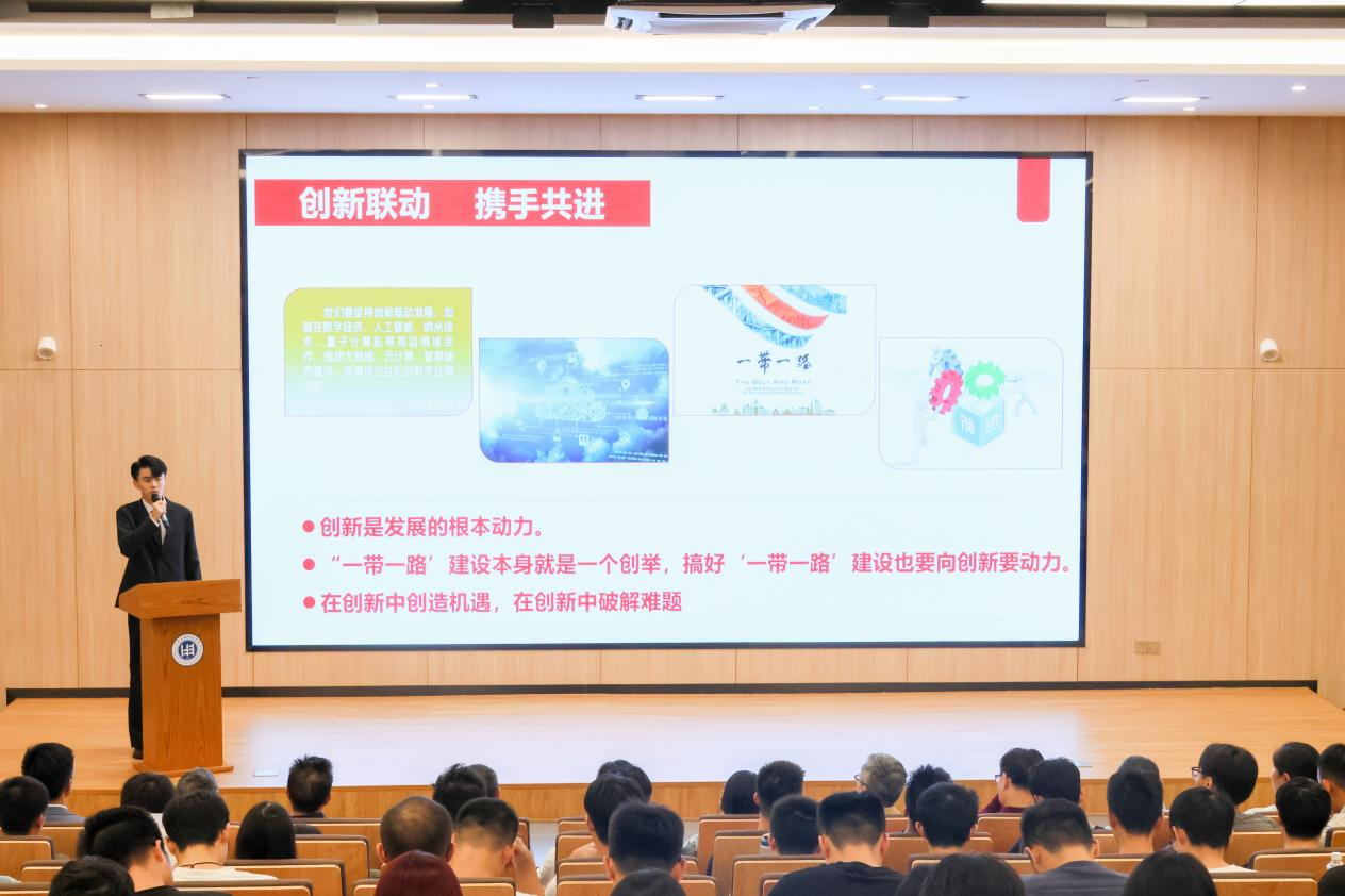 江涛同学作 “一带一路”是相互包容的“开放之路”主题宣讲。