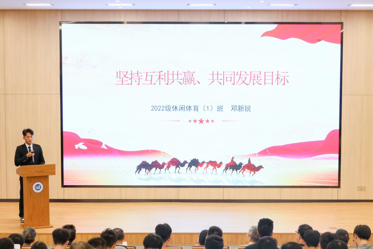 邓新锐同学作“坚持互利共赢、共同发展目标”主题宣讲。