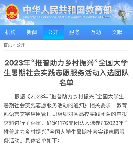 全国大学生暑期社会实践志愿服务团队名单