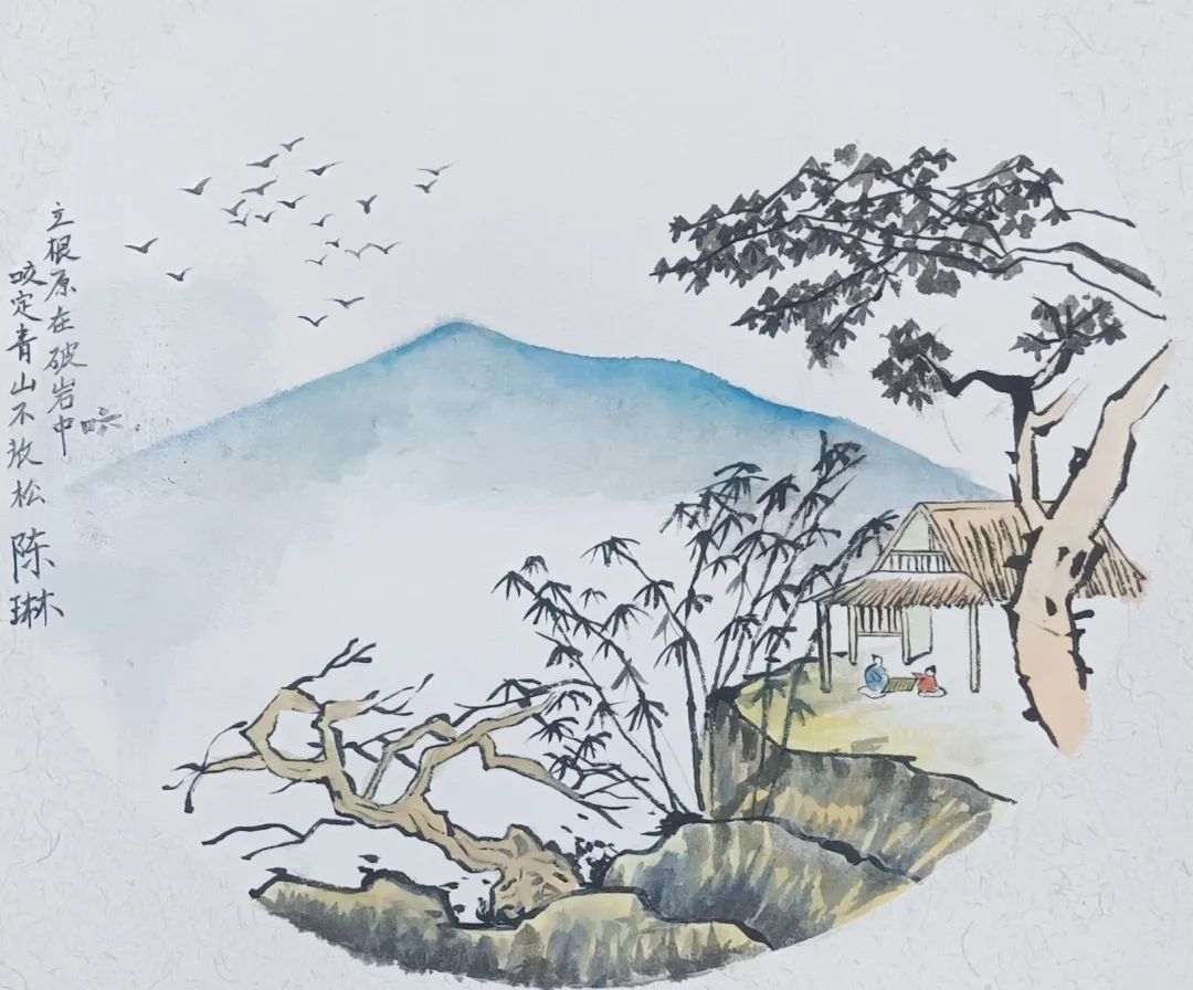 团队成员周永逸挖掘了美术史里的中国故事,深入讲解《清明上河图》和《千里江山图》的历史和创作,并通过粘土表现新形式宏伟的《千里江山图》,让学生发现中国画“诗书画印”的特色,以此发现中国文化之美,文字之美。团队成员杨蓓蓓则巧妙地从“中国书法”入手,从“书法文化的起源”讲到“文房四宝”,通过书法练习,学生们更加熟悉汉字的结构、部首和笔画。杨蓓蓓还带领同学们将符合国画意境的诗词,用毛笔字的形式题字到国画作品上,最终完成一副有字有画的国画作品。团队成员周永逸带领同学们认识锦灰堆及其发展历史,围绕文字构图形式,选用同学们自己名字的书法外形,利用多种素材在画面上进行粘贴。这节课既让同学们进一步认识了汉字的构成与书法的结构,又了解字的新艺术表达方式。