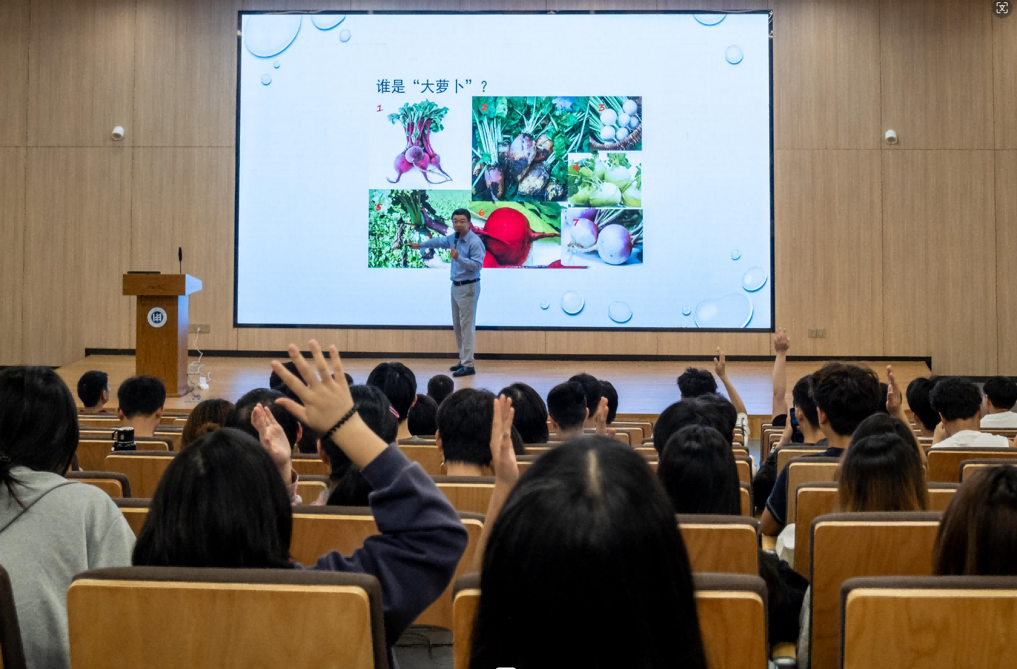 史军博士围绕着“是我们改造了植物吗”这个问题,通过人类为什么有智齿、文明古国为什么多出现在温带和亚热带区域、青蒿素的作用、 汉字的形状为什么是瘦长形状、农作物的需求和季风气候等方面,详细介绍了植物对人类进化发展史起到的关键作用。他指出,人类的形态、食物、文字、贸易、社会组织结构其实都来自相关的植物,人类改变植物为我所用,而人类也被植物改变着;植物对人类的影响不仅仅体现在今天的衣食住用行,还有人类的未来,人类对植物的认识,也是对自己的认识,人类驯化了植物,植物却塑造了人类。希望同学们能够重新认识植物对人类文明的意义,感受到每一篇叶子背后悦动的生命魅力,加强对植物的认识和了解,学会运用认识与实践的辩证关系,不断探索人与自然的和谐共生之路。