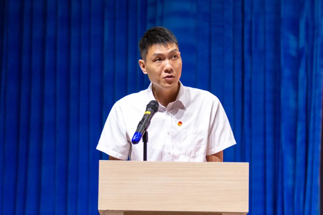 党委副书记、副校长刘志新代表学校讲话,向受到表彰的先进集体和个人表示热烈的祝贺,向长期以来关心和支持学校共青团工作,并为之作出积极贡献的广大师生,致以崇高的敬意和衷心的感谢。刘志新副校长表示,在今年五四青年节到来之际,习近平总书记寄语新时代青年时强调,广大青年要继承和发扬五四精神,坚定不移听党话、跟党走,争做有理想、敢担当、能吃苦、肯奋斗的新时代好青年,在推进强国建设、民族复兴伟业中展现青春作为、彰显青春风采、贡献青春力量,奋力书写为中国式现代化挺膺担当的青春篇章。习近平总书记的殷切寄语,对新时代新征程上青年一代挺膺担当给与肯定、寄予厚望,对共青团肩负起新时代新征程党赋予的使命任务发出时代号召,充分体现了以习近平同志为核心的党中央对青年和青年工作 一以贯之的重视关怀,为推动新时代新征程党的青年工作高质量发展进一步指明了方向、提供了根本遵循。在全团上下深入学习贯彻习近平总书记五四青年节对全国广大青年寄语精神之际,刘志新副校长代表学校对各级团组织和广大团员青年、团干部提出希望:一要深刻领会习近平总书记对青年一代的关心关怀;二要深刻领会习近平总书记对新时代青年的信任厚望;三要深刻领会习近平总书记关于五四运动的系列重要论述;四要深刻领会习近平总书记对新时代中国青年的成长指引;五要深刻领会习近平总书记对各级党组织的重要要求;六要深刻领会习近平总书记对共青团的殷殷嘱托,传承“党有号召,团有行动”的优良传统,锻造过硬团干部和团员队伍,着力当好党的忠实助手和可靠后备军。