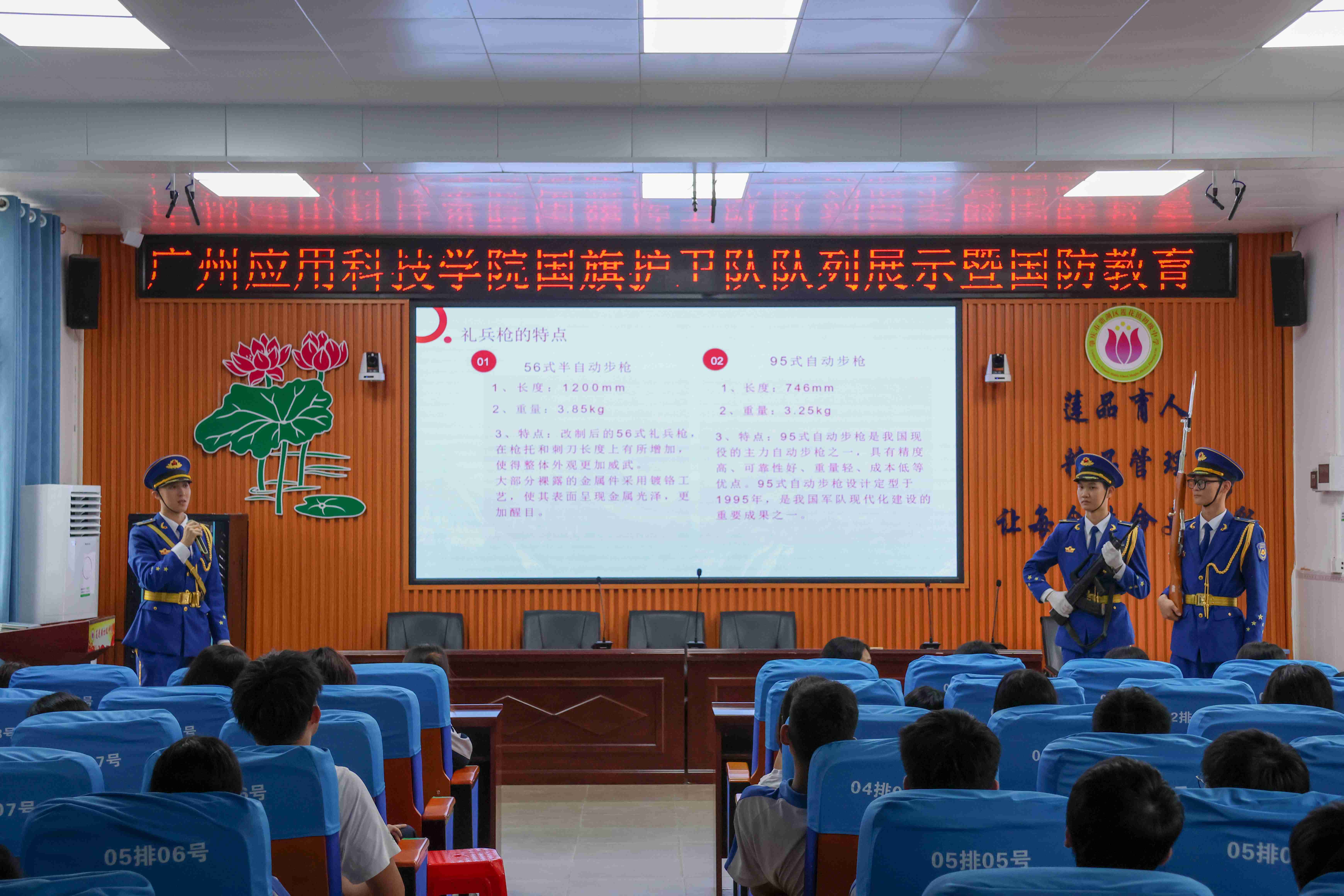 课堂上,国旗护卫队队员们通过56式礼兵枪和95式自动步枪等机械展示和实操演练,让同学们对国防装备有了更加直观的了解和认识。国防知识问答环节吸引了现场同学们的热情参与,活动结束后,每位参与的学生均获得了一份由广应科精心准备的专属纪念品。