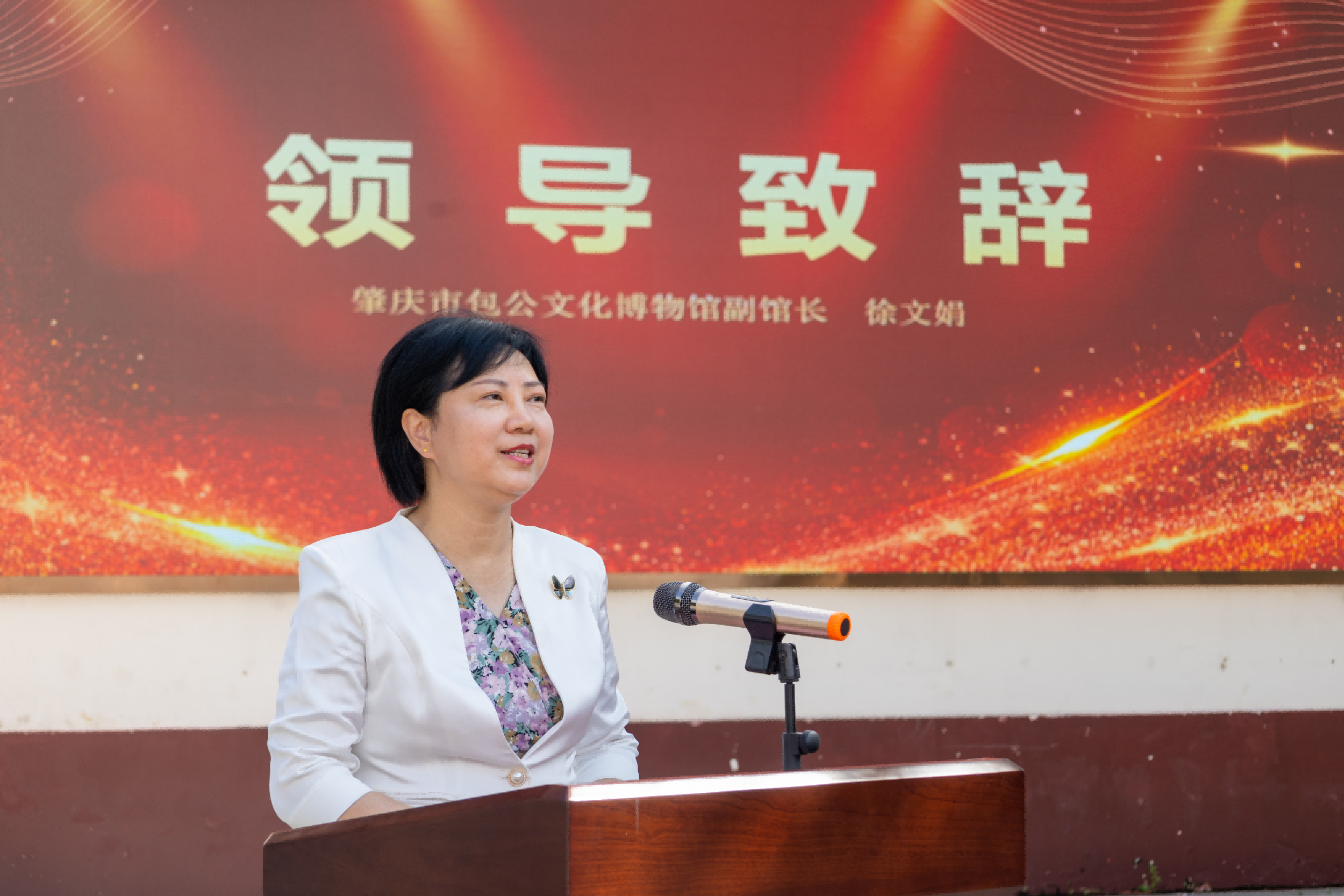 肇庆市包公文化博物馆副馆长徐文娟在揭牌仪式发表讲话。徐文娟副馆长表示,与广应科的合作将有助于推动馆校合作新模式的发展。她强调,未来双方共同开展一系列富有教育意义的教学活动及互动体验项目,让学生们通过亲身参与和体验,深入了解中华优秀传统文化的精髓,从而构建正确的人生观、价值观和世界观。她期望与广应科的师生共同见证包公文化博物馆的繁荣发展,共同传承和弘扬中华优秀传统文化。
