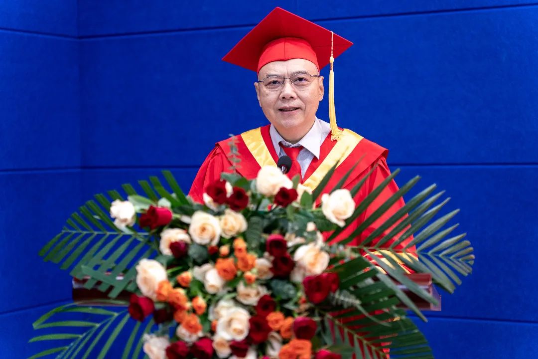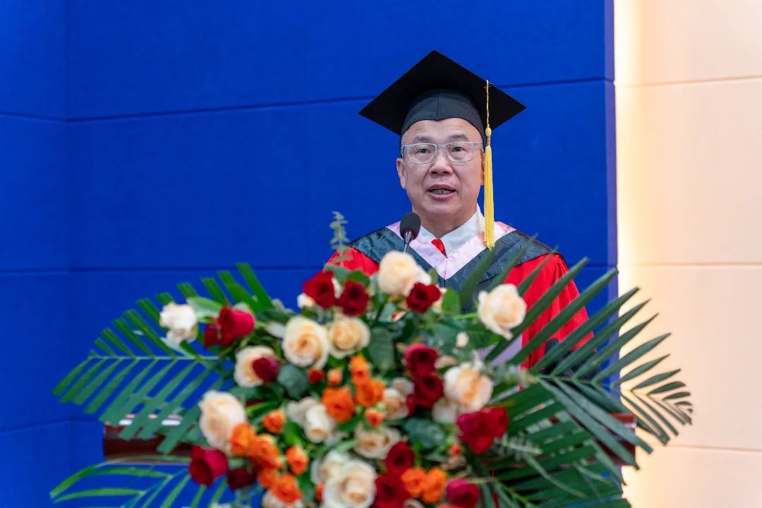 张光宇执行校长在毕业典礼上讲话,他代表学校全体师生员工,向广州校区4447名2024届毕业生顺利完成学业表示热烈的祝贺,向默默耕耘在教育第一线、辛勤付出的老师们致以最崇高的敬意,向一如既往地支持学校教育工作的家长们表达最诚挚的感谢。张光宇执行校长表示,回顾过往四年的光阴,是2024届毕业生与母校同舟共济、并肩作战的时光。2020年9月,同学们怀着梦想和激情踏入广州大学松田学院的校门,自此开启了一段全新的征程。同年12月,学校经教育部批准转设并更名广州应用科技学院。这四年来,随着肇庆校区的建成与顺利搬迁,学校迎来了前所未有的高质量发展。展望未来,勇毅前行,张光宇执行校长送给毕业生们三点希望:一是坚守品德为本,怀德自重,方能在人生道路上行稳致远;二是坚定理想信念,继往开来,方能开辟新的天地;三是坚持学习创新,敢于担当,方能在时代的洪流中勇立潮头。毕业之际,母校牵挂每一个即将远行的毕业生,张光宇执行校长深情的表示,广州校区2024届毕业生是广州大学松田学院的最后一届毕业生,广应科作为永远的母校,欢迎全体校友,在未来的日子里,无论你们身处何方,学校的大门永远向大家敞开。也期待毕业生们在闲暇之余,去到肇庆的新校区看看,一起感受母校的进步与发展,母校将是你们职业发展道路上的坚强后盾。