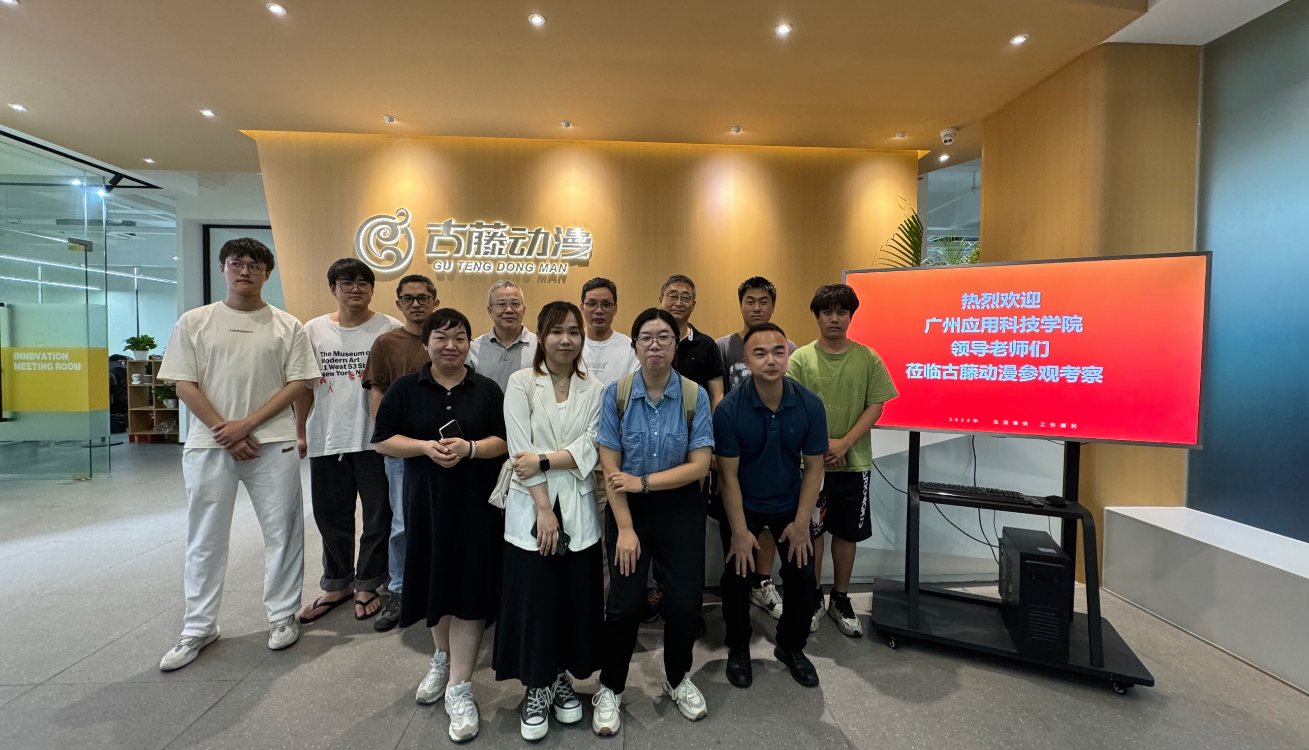 为积极响应党中央、国务院关于促进高校毕业生就业的号召,广州应用科技学院于7月16日组织了一场别开生面的“访企拓岗”活动。党委书记、副校长王永云同志亲自带队,与美术创意学院院长贺锋林、动画系主任朱学勤等一行人,深入探访了行业知名的广州古藤动漫科技有限公司(以下简称“古藤动漫”),旨在进一步拓宽毕业生就业渠道,实现教育与产业的精准对接。