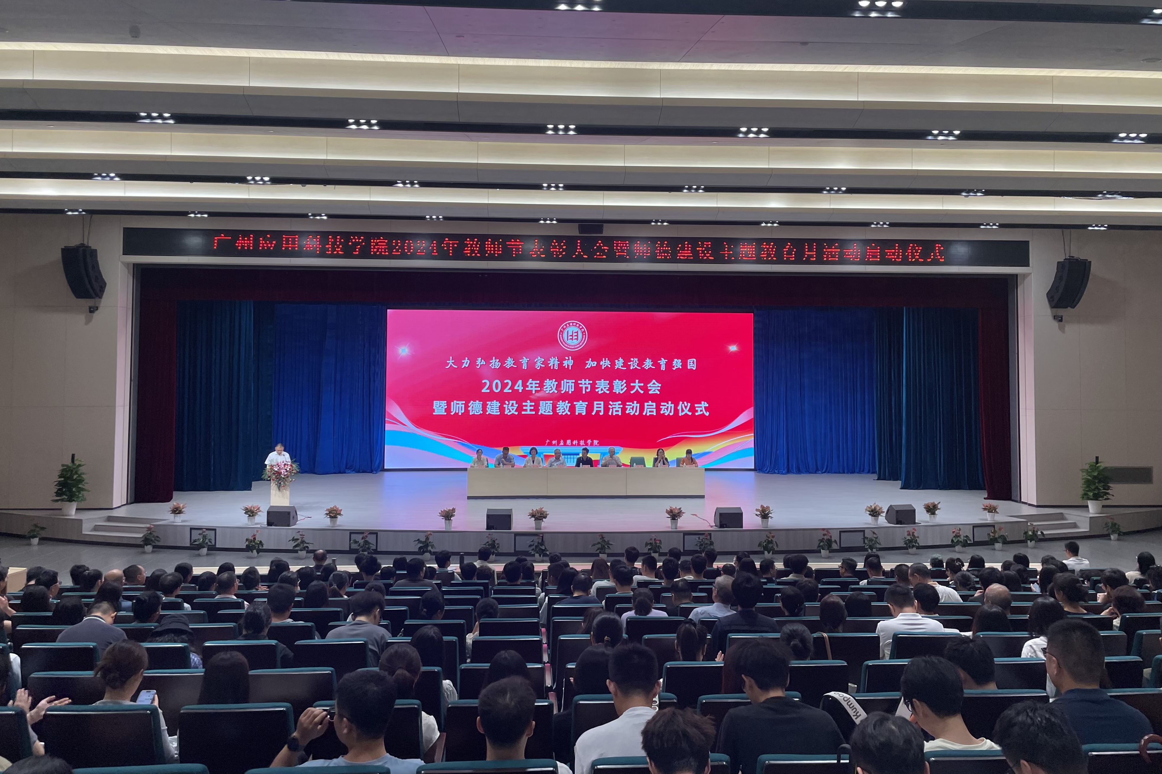 为深入学习贯彻习近平总书记关于教育的重要论述,持续推进教师思想政治和师德师风建设工作,在第40个教师节即将到来之际,为营造崇德向善、尊师重教的浓厚氛围,广泛宣传新时代好老师形象,以实际行动表达对教师的尊敬,9月9日,我校举行2024年教师节表彰大会暨师德建设主题教育月活动启动仪式。学校董事长王睿、执行校长张光宇、党委书记王永云、常务副校长吴舸、副校长刘志新、副校长李荆松、校长助理吴明生、校长助理李根珍、财务总监姚满金等董事会及党政校领导出席大会,教职工代表参加大会。大会由常务副校长吴舸主持。