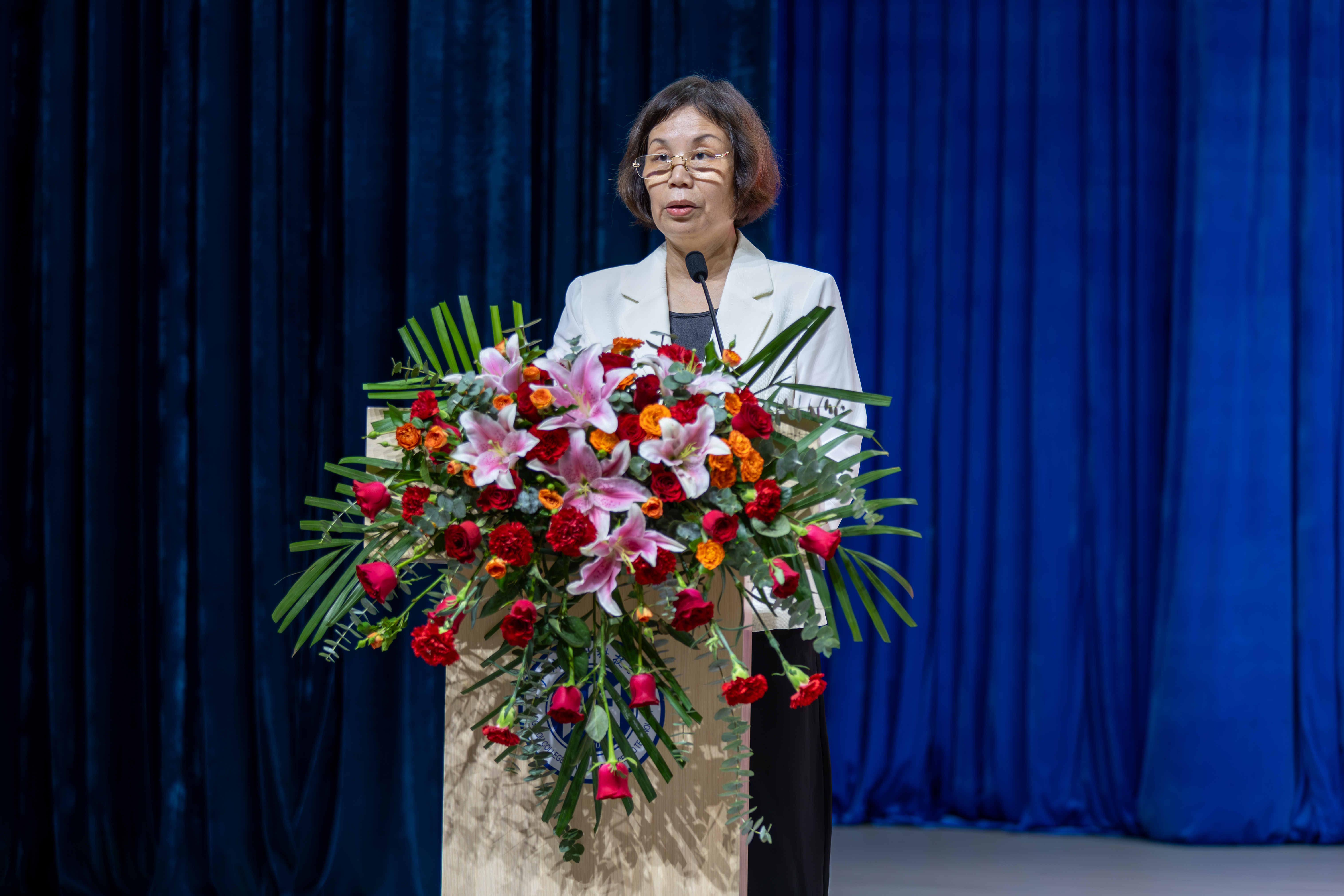 董事长王睿在大会上作热情洋溢的致辞。他首先代表集团和学校董事会向全体教职工致以节日的问候。他表示,过去一年,在集团的正确领导下,学校董事会紧抓时代脉搏,深刻把握“为党育人、为国育才”的初心使命,将教育家精神融入学校发展全过程,不断推动人才培养质量的提升,为学校高质量发展注入强劲动力,并取得瞩目的成绩。他指出,今年是新中国成立75周年,是实现“十四五”规划目标任务的关键一年,也是学校快速、高质量发展的关键之年。学校董事会锚定新方向、描绘新蓝图,进一步明确“三步走”中长期发展战略,制定指引学校发展的“特色强校”和“三园融合”发展模式,突出产教融合特色,凝聚应用科技优势,形成良好发展态势。未来,学校将进一步提高治理能力和治理水平,进一步营造良好的教育教学和科研创新氛围。王睿董事长鼓励全体教职工继续发扬“爱岗敬业、教书育人”的精神,并提出三点希望:要坚守教育初心,彰显大情怀;要秉持立德树人,锤炼师德风范;要潜心学术研究,积淀深厚学识。站在新的历史起点上,携手并进,以教育家精神为指引,紧抓时代赋予的宝贵机遇,以更加坚定的信心、更加昂扬的斗志,共同开创广应科新更加辉煌的未来。