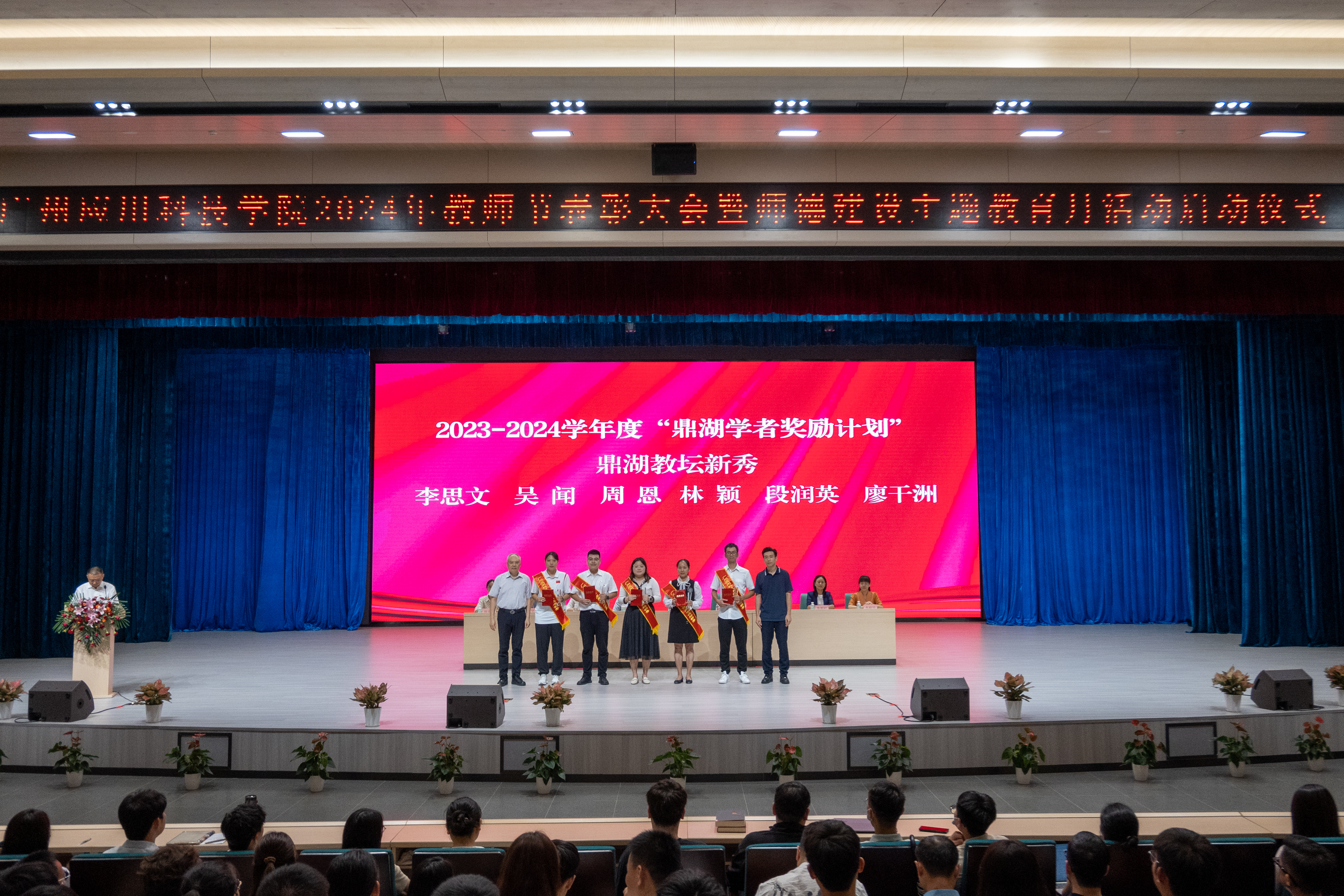 学校党政校领导为“鼎湖学者奖励计划”获得教师,以及获得先进集体、先进个人、教学优秀奖教师代表颁奖。