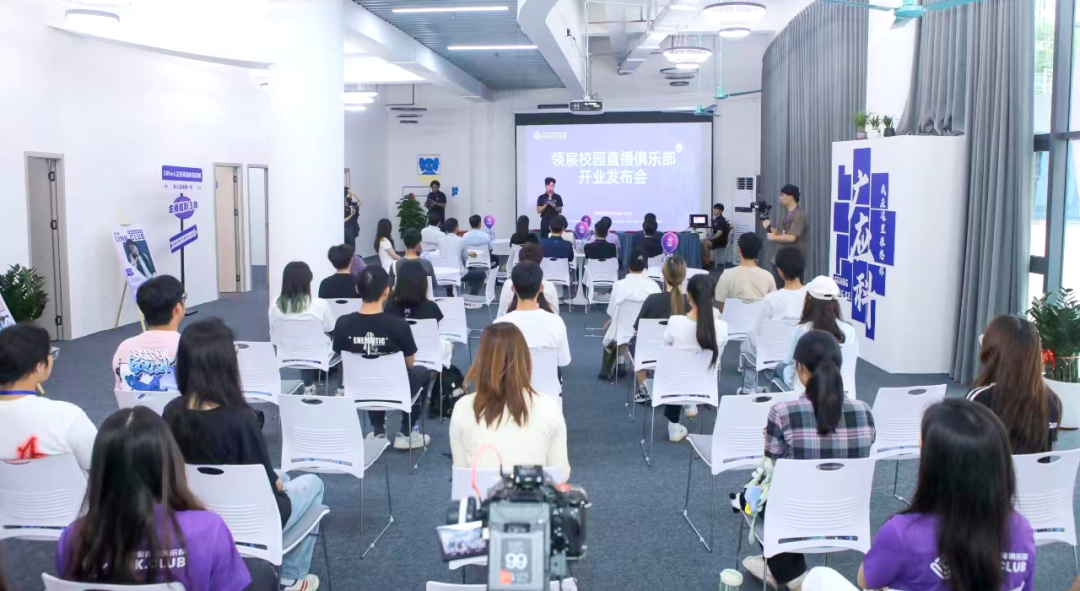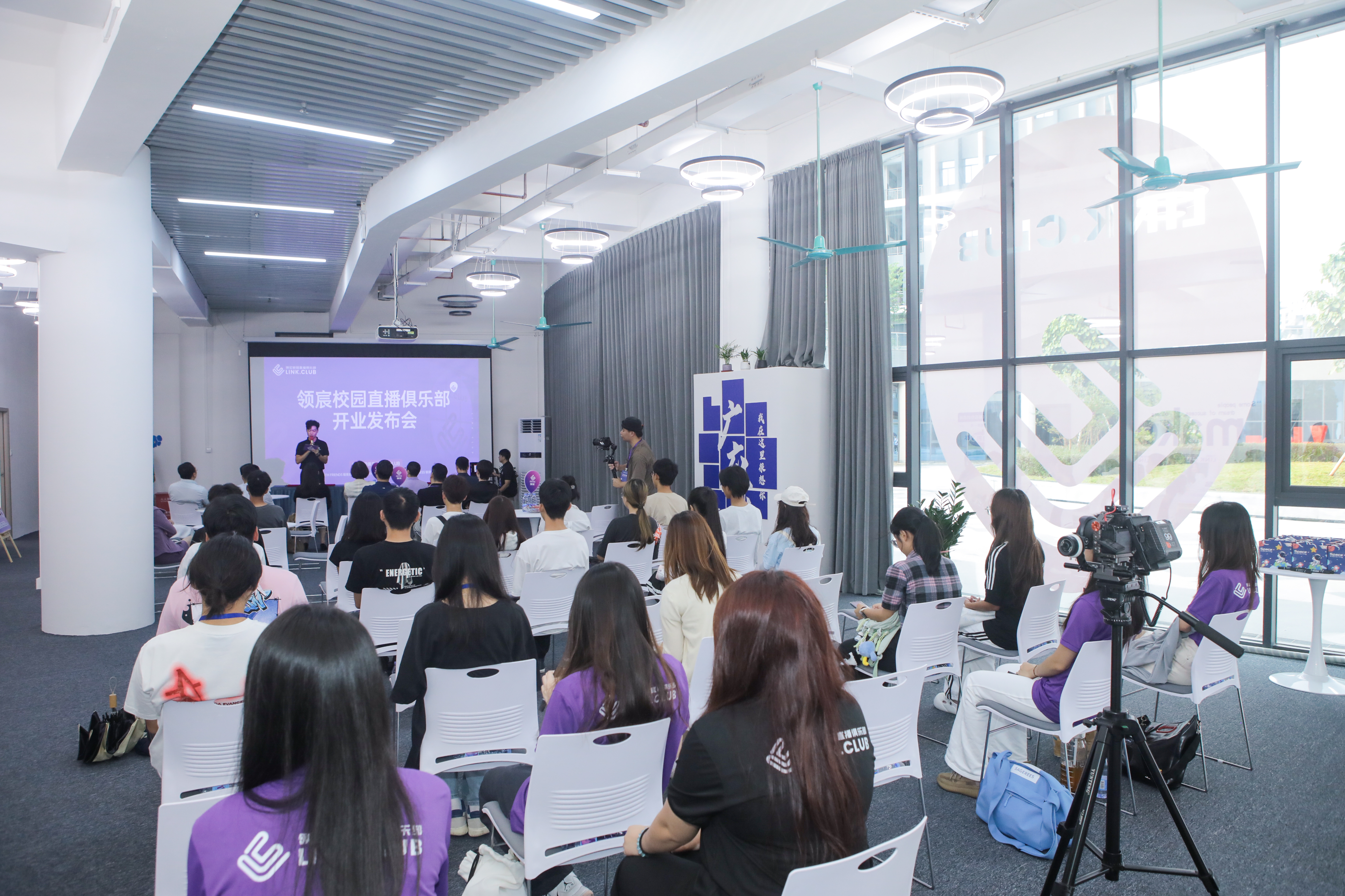 9月26日上午,广州应用科技学院科技广场热闹非凡,领宸校园直播俱乐部举行开业发布会。此次活动不仅标志着广应科校园直播校企合作的开启,更是一次教育与新兴产业深度融合的积极探索。中国教育集团投资关系部总监郭盈莹,我校副校长刘志新,广东横琴粤澳深度合作区领宸投资有限公司董事长陈高艺、总经理黄沂等领导出席发布会,党委宣传部部长李帆、创新创业学院院长荀海鹏、校团委书记郭振、总务处副处长刘绍松,以及师生代表参加开业发布会。