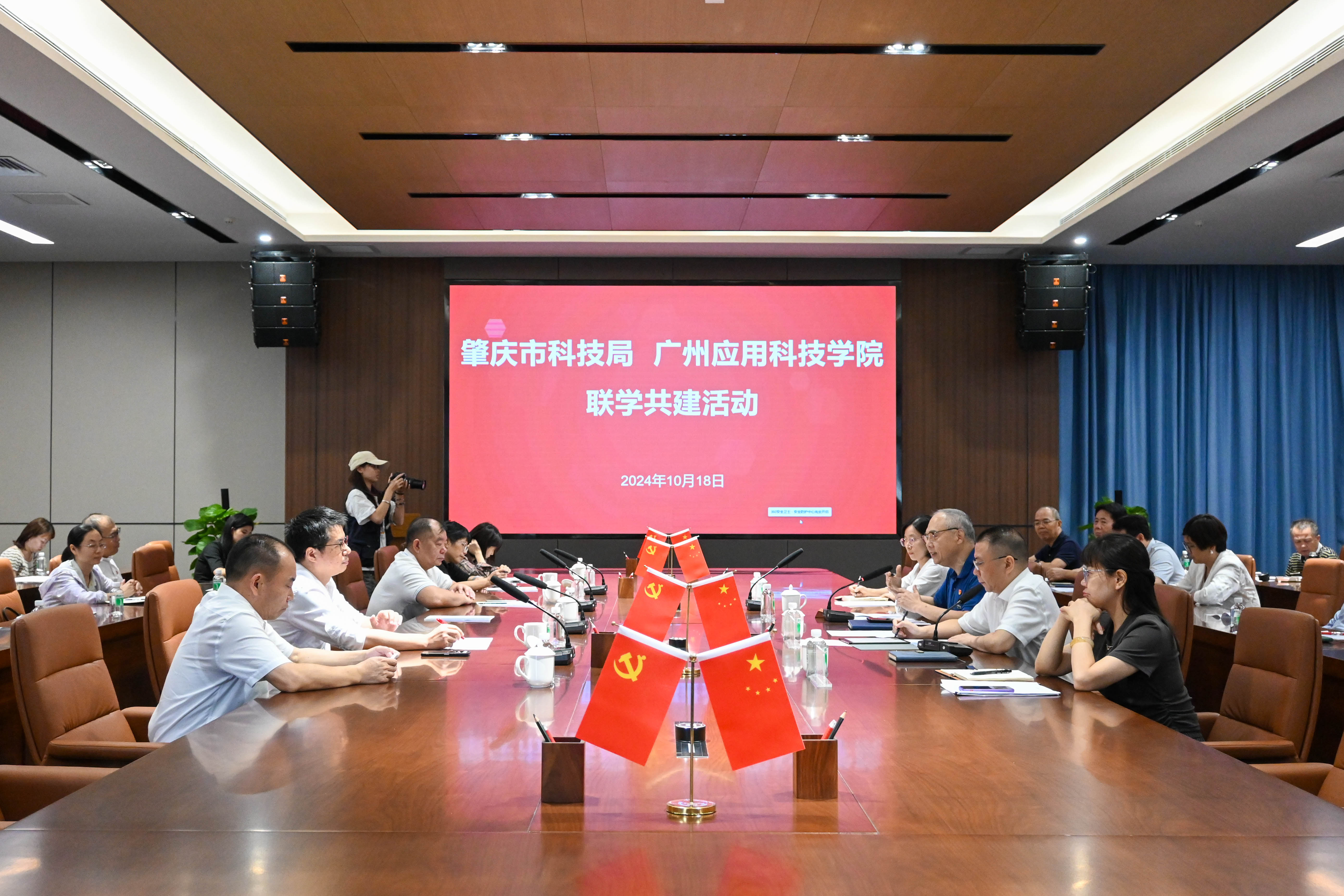 为全面推进党的二十大精神走深走实,进一步增强党组织的凝聚力和战斗力,10月18日上午,肇庆市科技局与广州应用科技学院联合举办了一场内容丰富、意义深远的联学共建活动。肇庆市科技局副局长李文杰、副局长漆明明带领该局相关科室负责人莅临我校,通过参观学校党建馆、参观学校“三园融合”基地建设现场,以及与我校党政校领导开展联学共建座谈会的形式,加深校政双方对彼此工作的了解,增进友谊,强化合作,共同推动地方科技创新和高等教育事业的繁荣发展。我校执行校长张光宇、常务副校长吴舸、校长助理李根珍、财务总监姚满金出席联学交流,综合办公室、党委宣传部、党委组织部、院校研究中心、科研处、教务处负责人、百千万工程领导小组办公室以及各二级学院负责人参加座谈。
