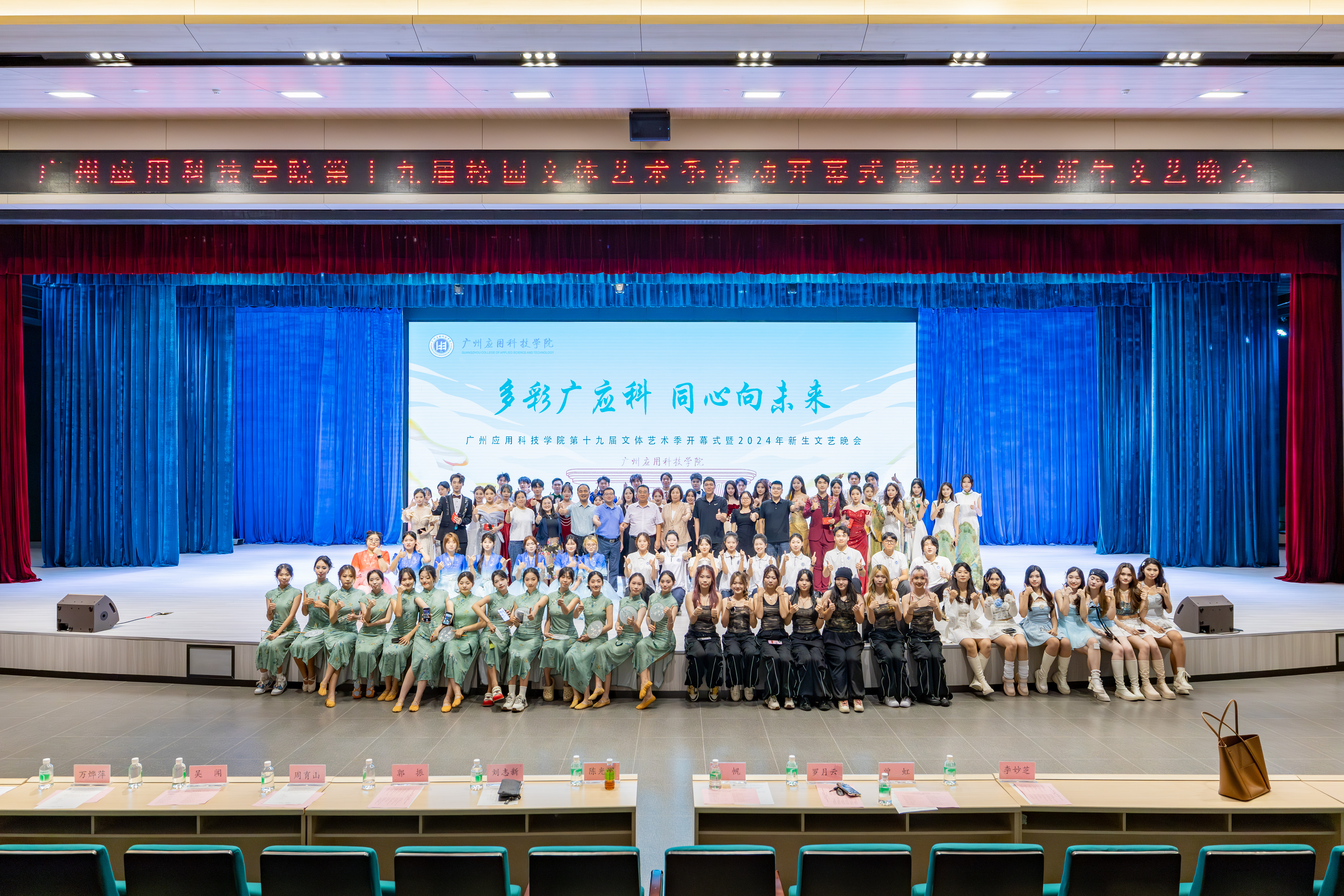 文化兴则国运兴,文化强则民族强。党的二十届三中全会提出,中国式现代化是物质文明和精神文明相协调的现代化。为深入学习贯彻党的二十届三中全会精神,深入学习贯彻习近平文化思想,坚定文化自信,坚持守正创新,落实立德树人根本任务,营造健康文明向上的校园文化艺术氛围,10月22日,广州应用科技学院第十九届校园文体艺术季在图书馆小礼堂开幕。党委书记陈光团,副校长刘志新出席开幕式,党委宣传部、校团委、学生处、各二级学院相关负责人,以及师生代表800余人参加开幕式。