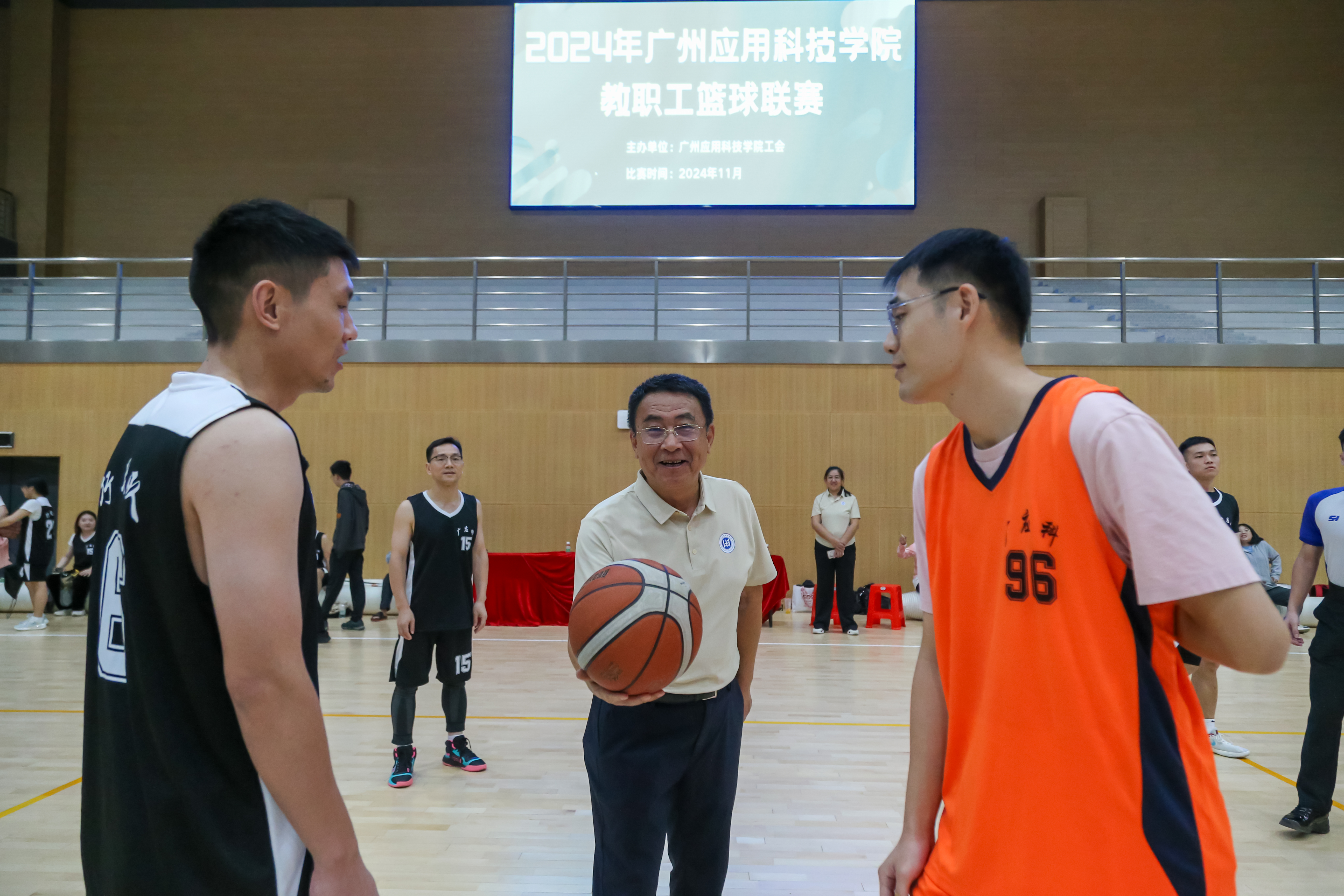 随后,学校党委书记陈光团发表了激情洋溢的致辞。他首先向学校2024年教职工篮球赛的开幕表示祝贺。陈光团书记表示,广州应用科技学院始终坚持立德树人为根本任务,以高质量发展为目标导向,紧跟国家全民健身政策的步伐,实施体育强校发展战略,致力于培养德智体美劳全面发展的新时代应用型人才。他指出,体育运动不仅能够强健体魄、激发斗志,还能培养团队合作精神和集体荣誉感。他希望全体教职工在追求学术卓越的同时,也要注重体育锻炼,增强体质,以更加饱满的热情投身教育事业。
