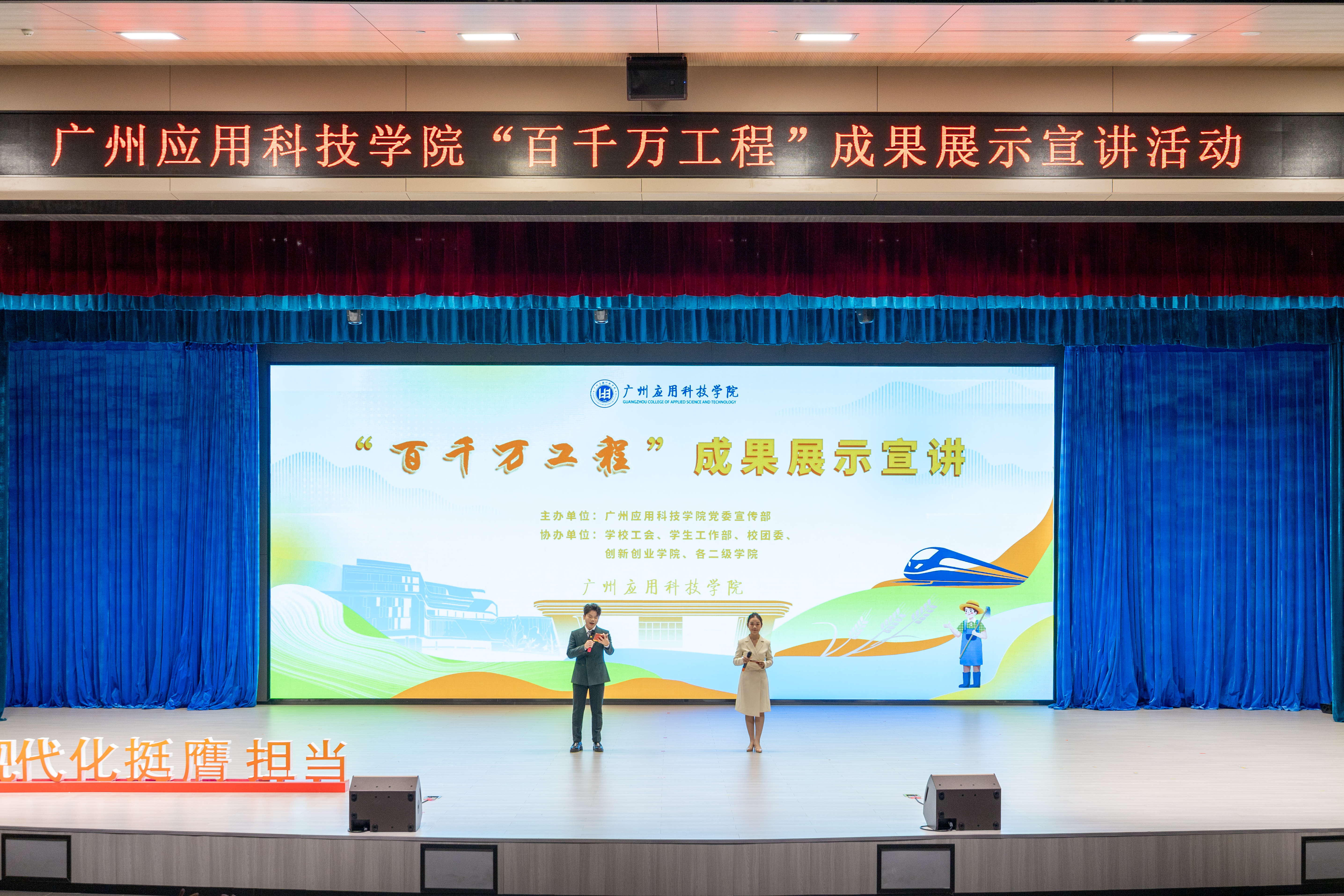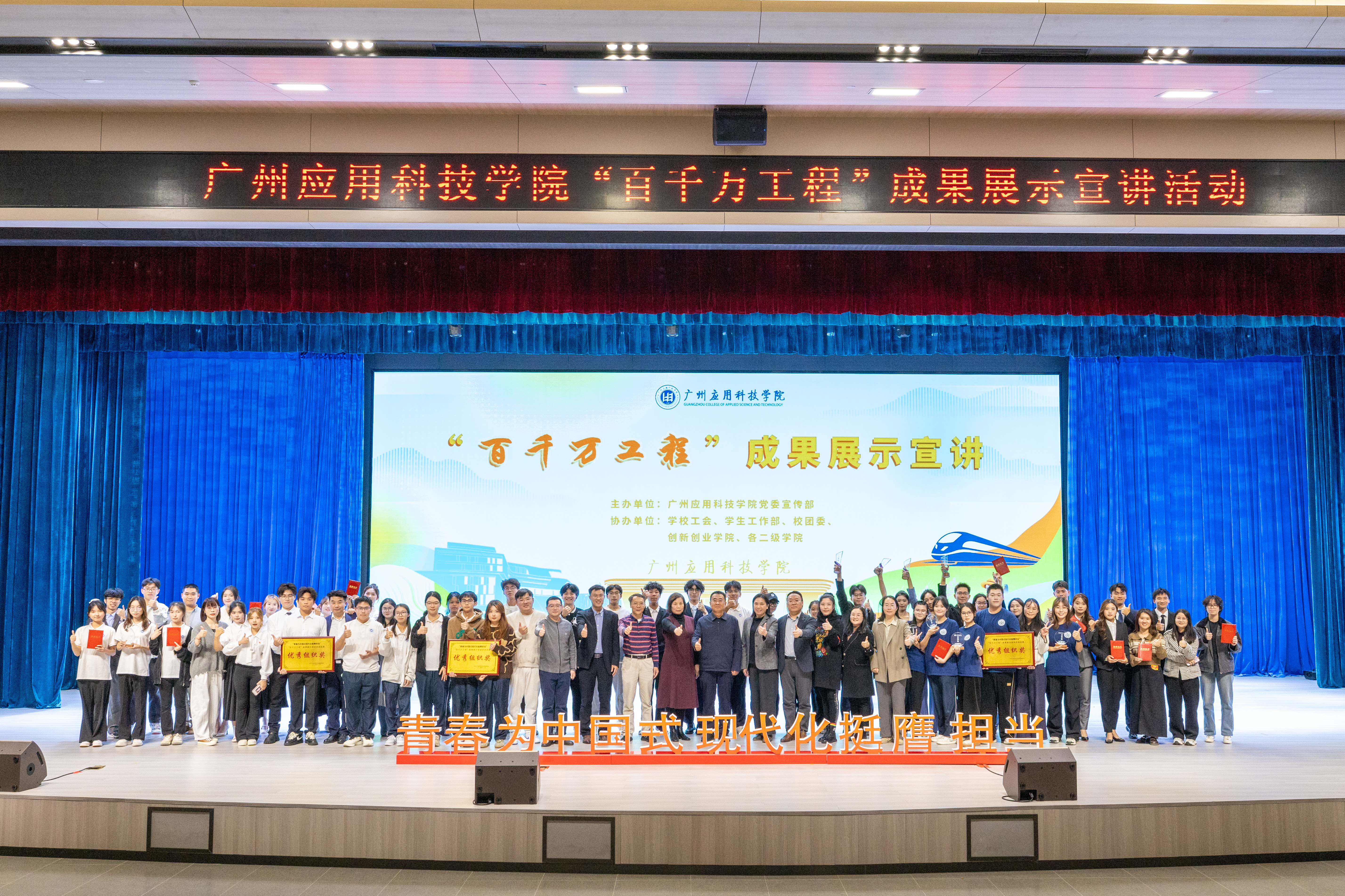 今年是“百千万工程”加力提速推进、实现全面突破的关键之年。广州应用科技学院从年初开始,做好顶层设计,制定目标任务,出台系列政策,完善考核评价,做优典型选树。学校党政领导以上率下,多次带队深入基层调研推进“百千万工程”,全校上下掀起实干争先、百舸争流的热潮。学校党委宣传部牵头主办2024年“百千万工程”宣讲活动,得到了各相关职能部门、各二级学院的大力支持。