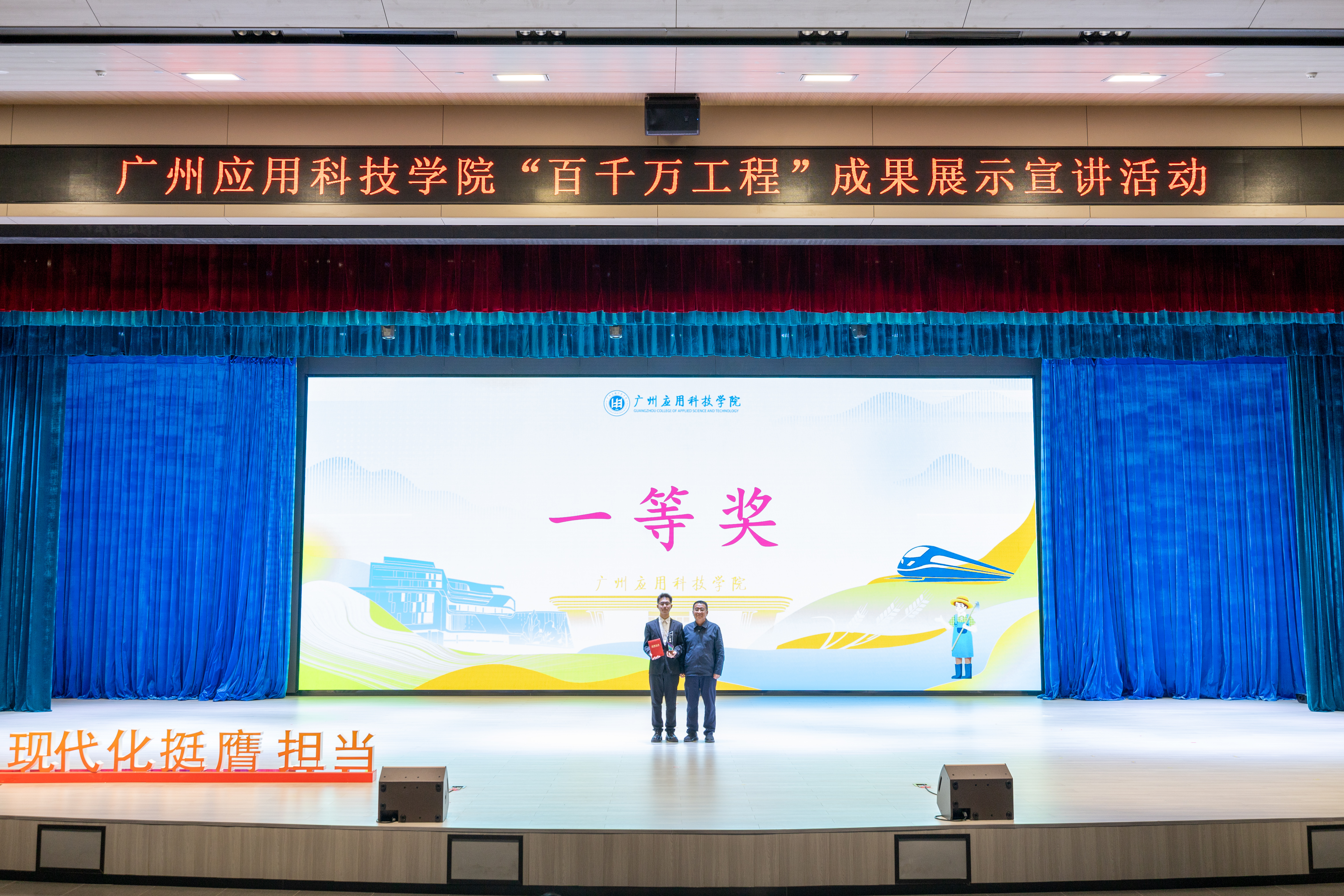 宣讲决赛现场,各二级学院宣讲员用通俗易懂、生动鲜活的语言讲述了“百千万工程”的故事和实践经验,多角度展示广应科实施“百千万工程”取得的成效,让师生们对今年开展“百千万工程”有了更加全面和深入的了解。