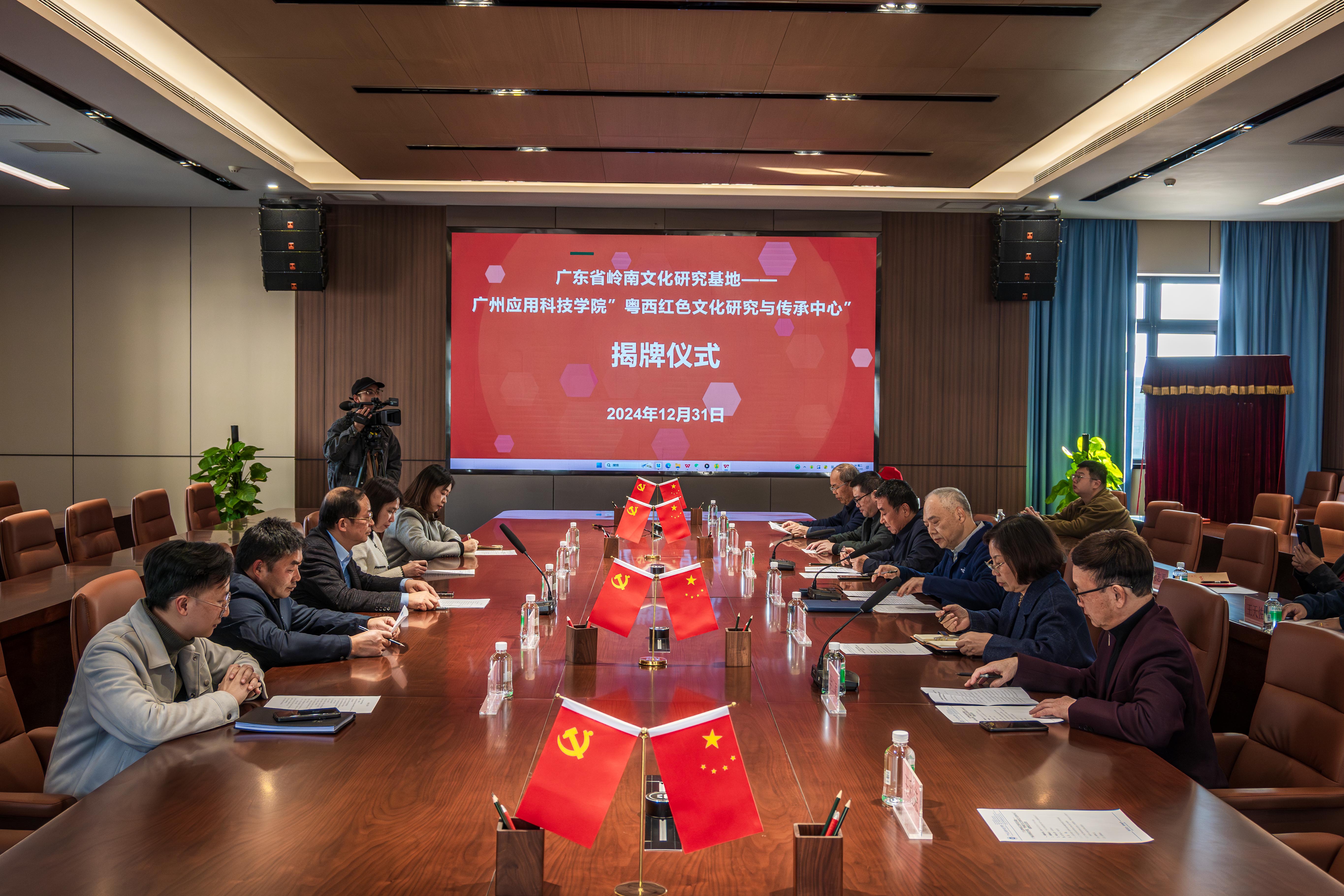 粤西红色文化是中国红色文化的重要组成部分,广应科肇庆校区所在的区域位于粤港澳大湾区的西南门户枢纽,为深入学习贯彻习近平总书记关于用好红色资源的重要论述,传承红色基因、弘扬粤西红色文化精神,2024年12月31日,广东省岭南文化研究基地——广州应用科技学院“粤西红色文化研究与传承中心”正式成立,并在广州应用科技学院肇庆校区举行揭牌仪式。这是广州应用科技学院继城乡文化发展研究中心之后,又一省级社科基地正式成立。
