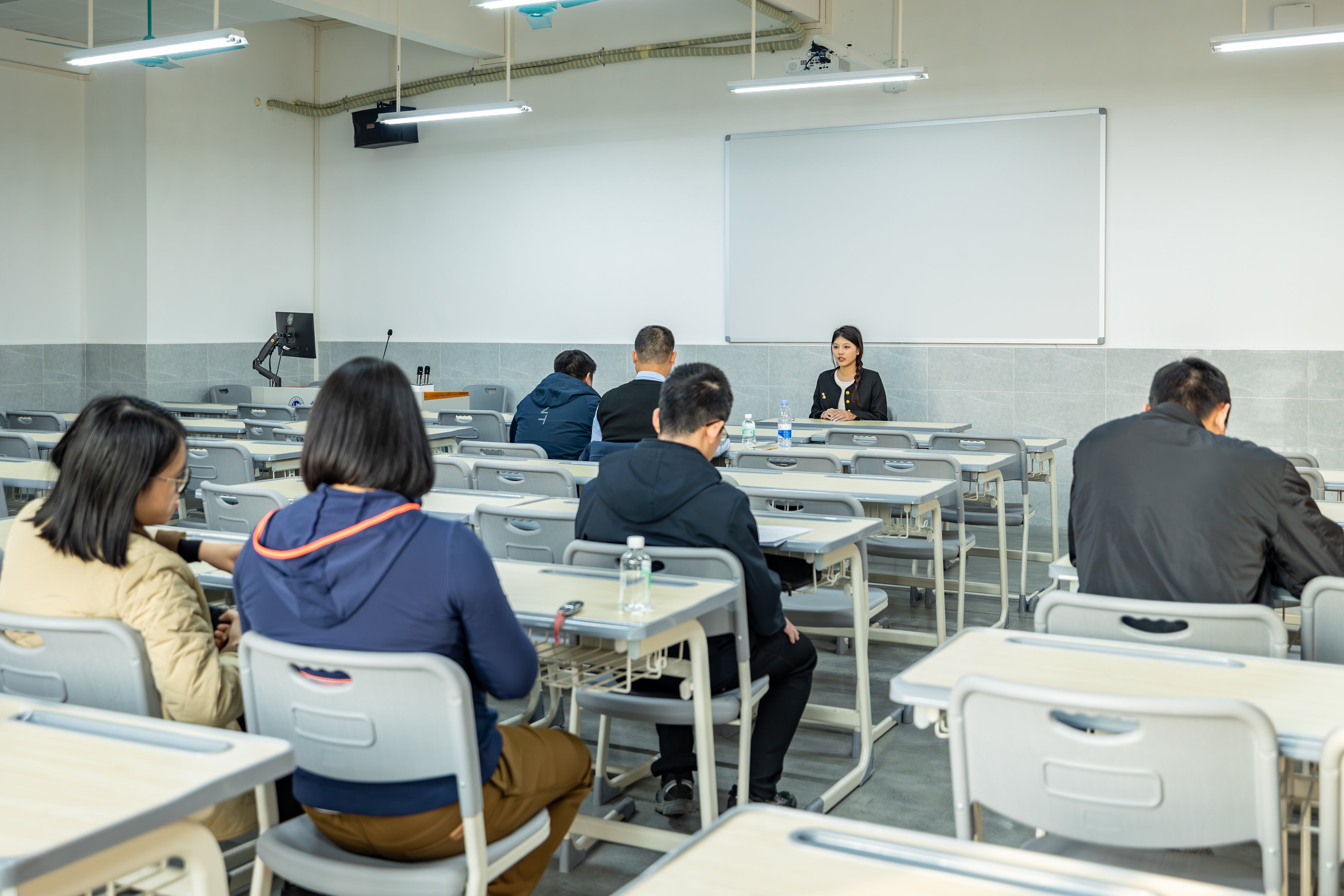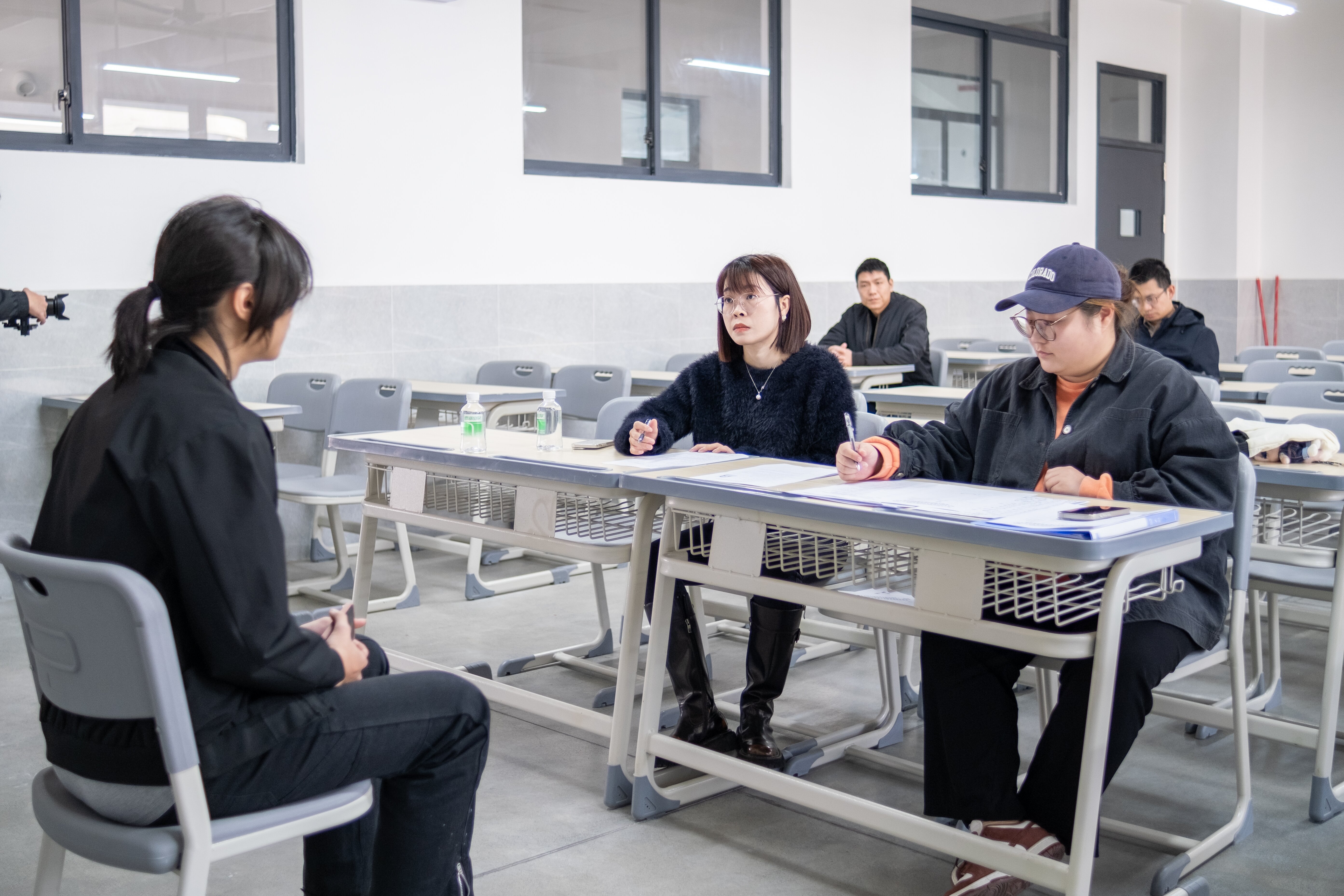 候考室里,学子们穿着整齐的衣装,对即将进行的面试做好了充分的准备。在等待的过程中,他们利用好时间,整理资料打好腹稿,反复温习着即将展示的自我介绍,或与身旁的同学轻声交谈,分享彼此的经验感悟。面对难以避免的紧张情绪,学子们都积极地进行心理调适,努力让自己保持最佳的状态,准备在面试中发挥最高的水平,展现出最好的自己。