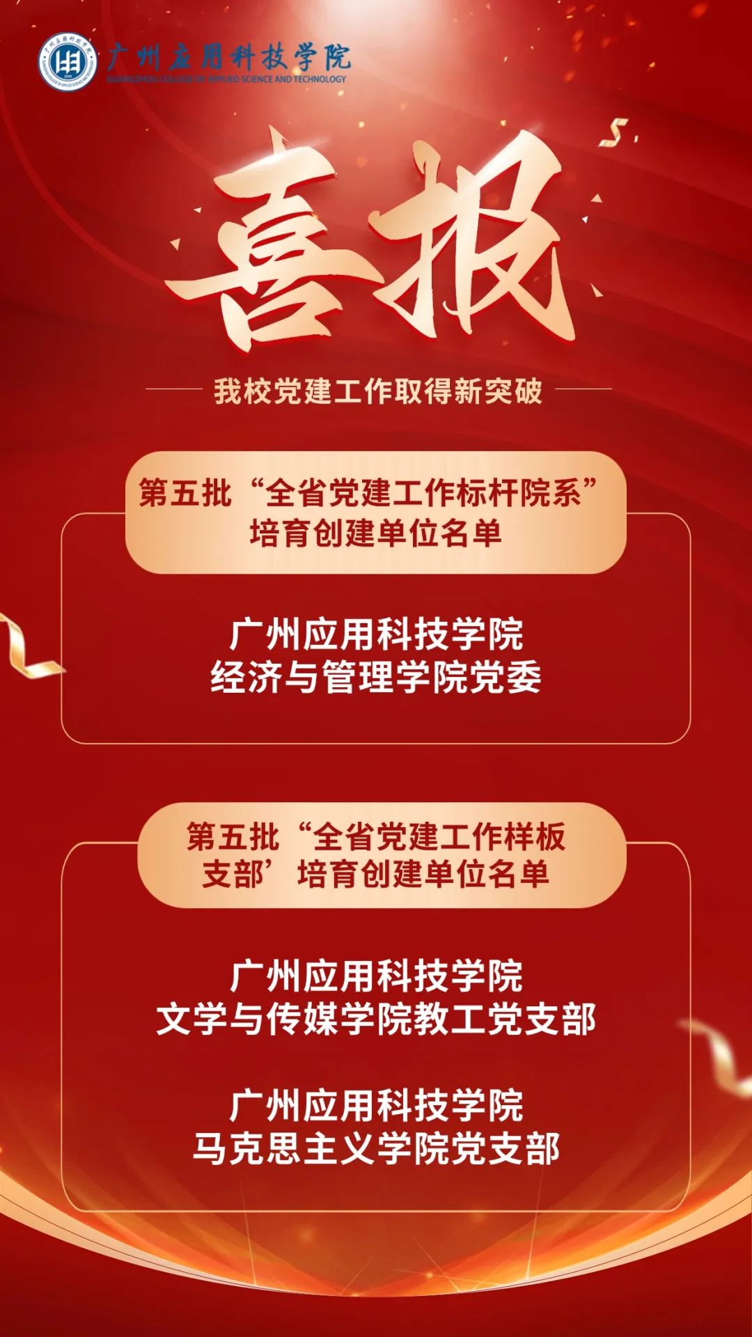 未来,学校党委将持续深化党建“双创”工作,进一步发挥培育创建单位示范引领作用,全面提升基层党组织的政治功能和组织功能,更加有力地将党的建设与学校事业发展深度融合,落实立德树人根本任务,以高质量党建引领推动学校为党育人、为国育才,实现高质量发展,为教育强国建设、推进中国式现代化贡献广应科力量。