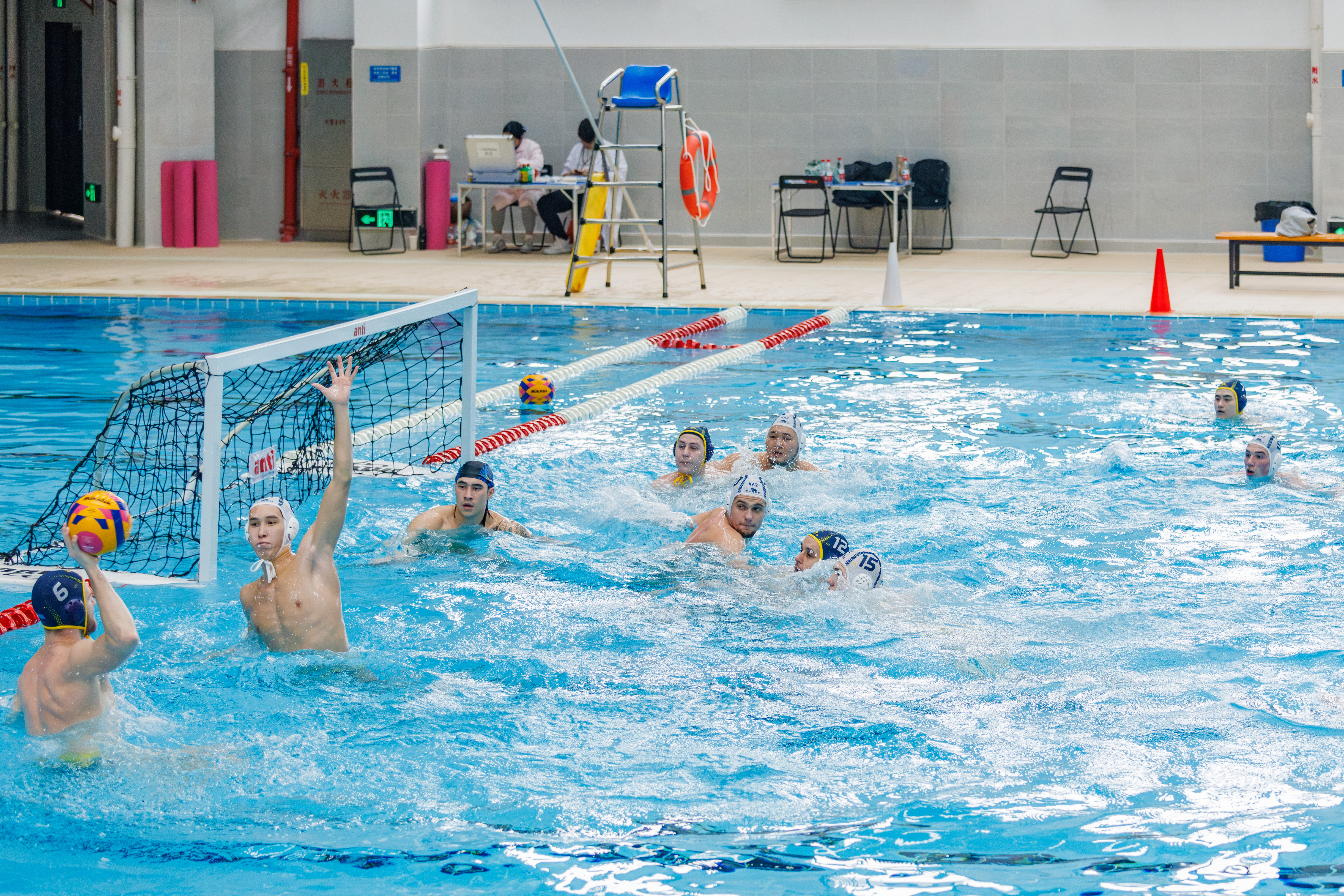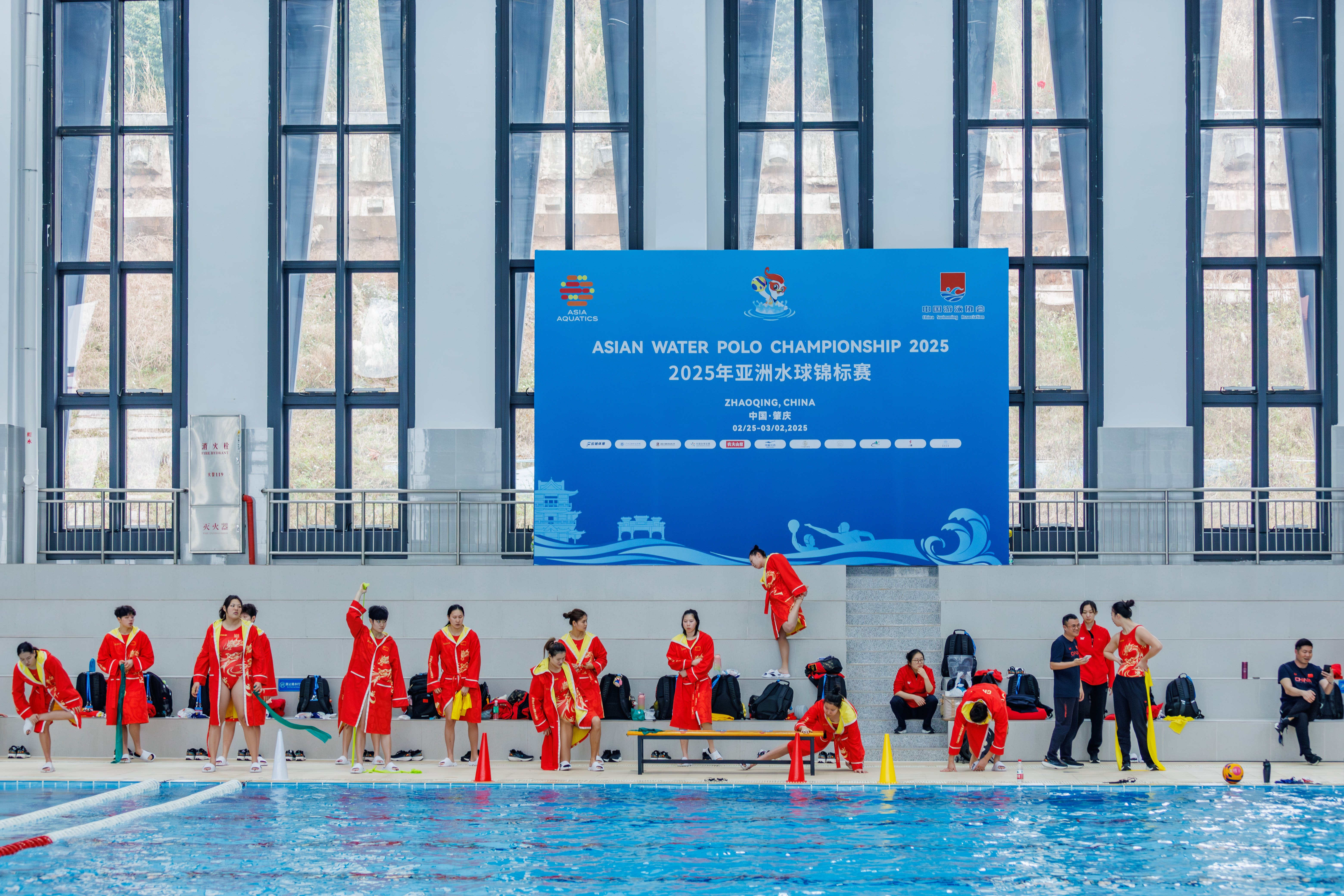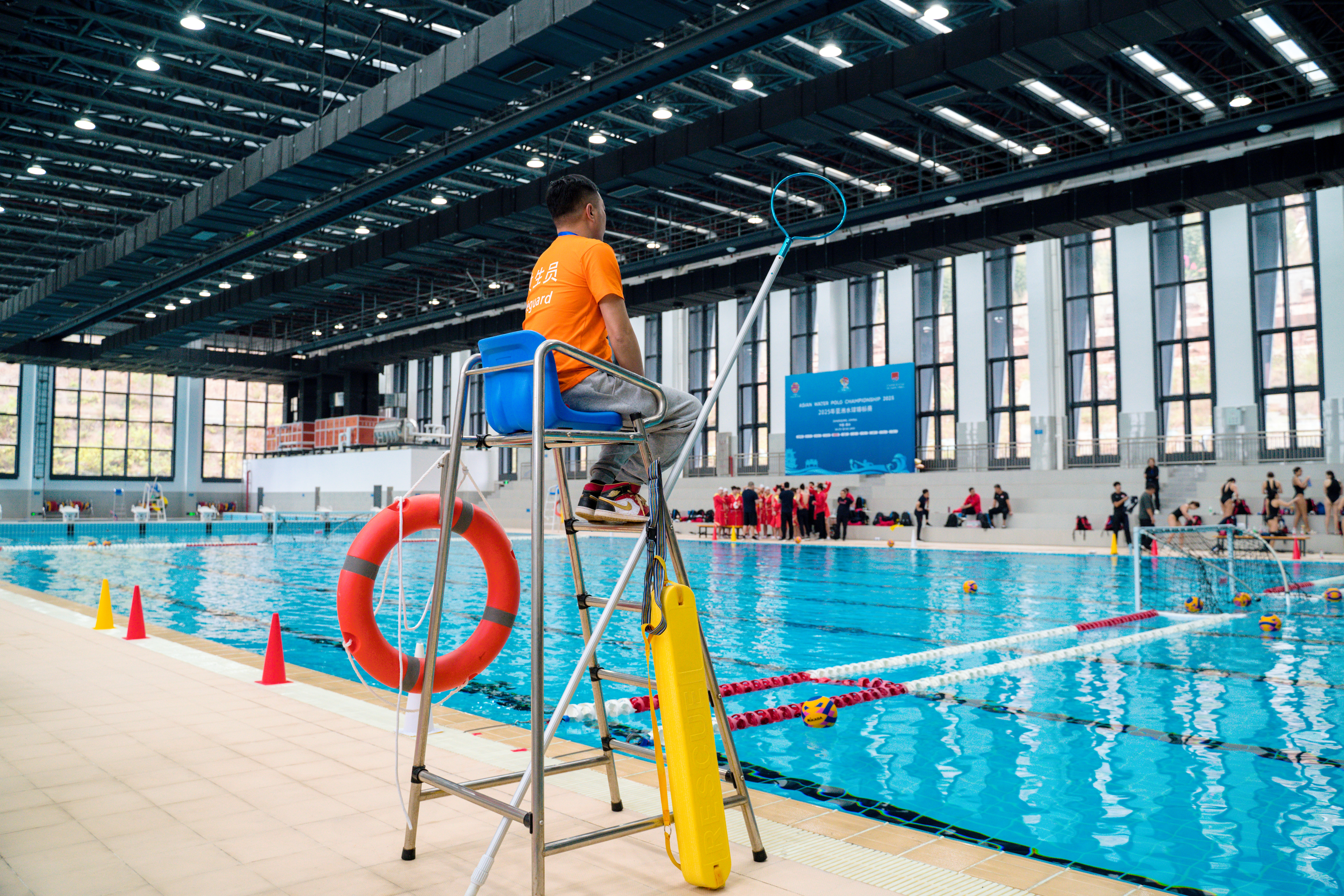 发挥资源优势,助力亚洲水球。广州应用科技学院游泳馆总面积2994㎡,泳池面积1612.5㎡,设有标准泳池和训练池。其中,标准泳池50米*21米,可设8个标准泳道,水深2米;训练池长度25米*25米,水深1.2米,安装了恒温恒湿及新风系统。作为本次亚锦赛的主要协办单位,我校精心运维训练场地,强化场地保障,确保游泳馆内设施符合国际标准。在此次亚洲水球锦标赛训练期间,提供了优良的场地与完备的设施支持。崭新的游泳场馆、开阔的泳池、泳池边严阵以待的志愿者和医护人员,都为亚洲一流水球强队提供了安全、专业的赛前训练环境与最佳条件,确保运动员在高强度、大负荷的训练中高质量完成训练计划。我校充分发挥资源优势,为2025年亚洲水球锦标赛的成功举办提供了坚实的服务保障,以实际行动彰显“广应科”力量。