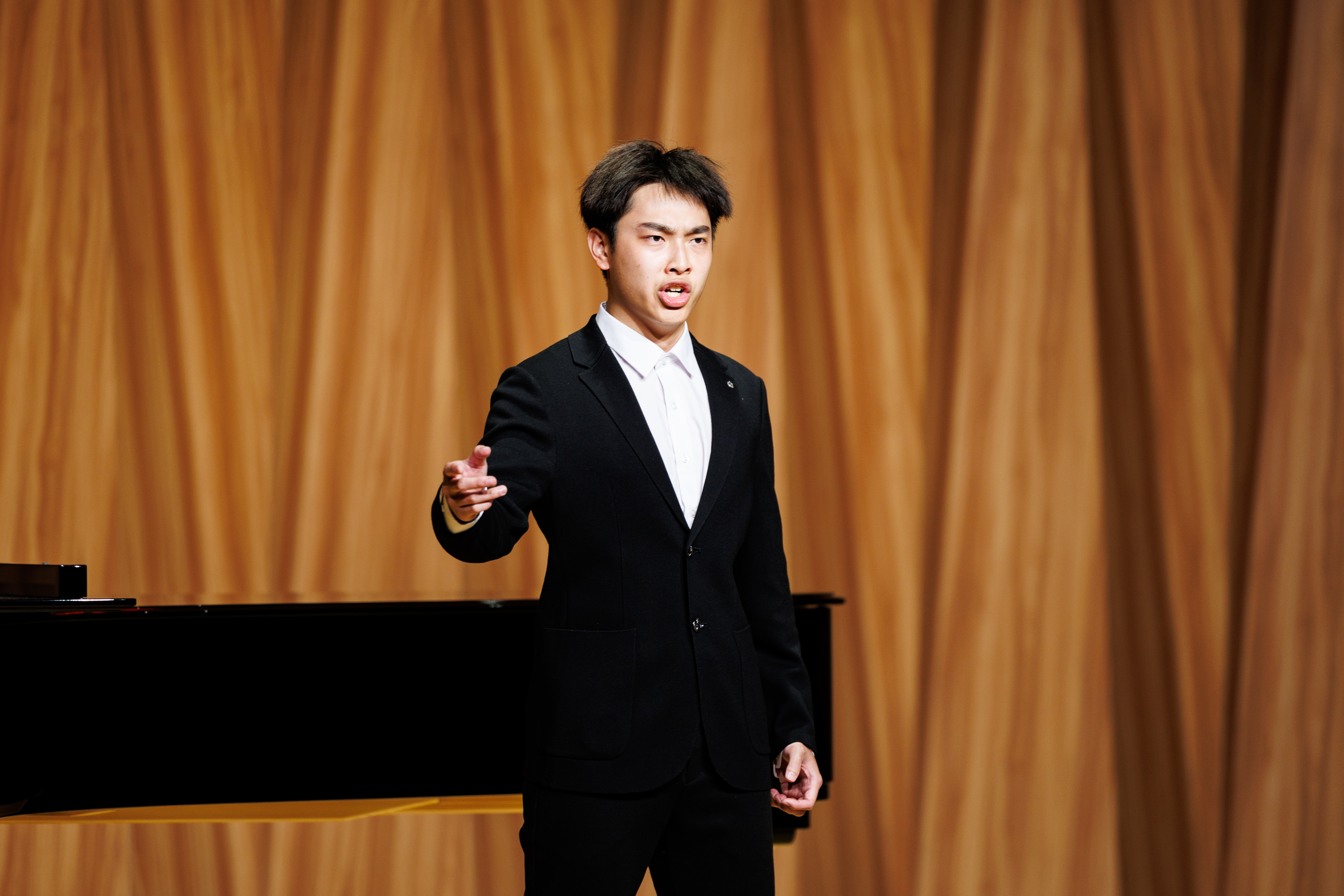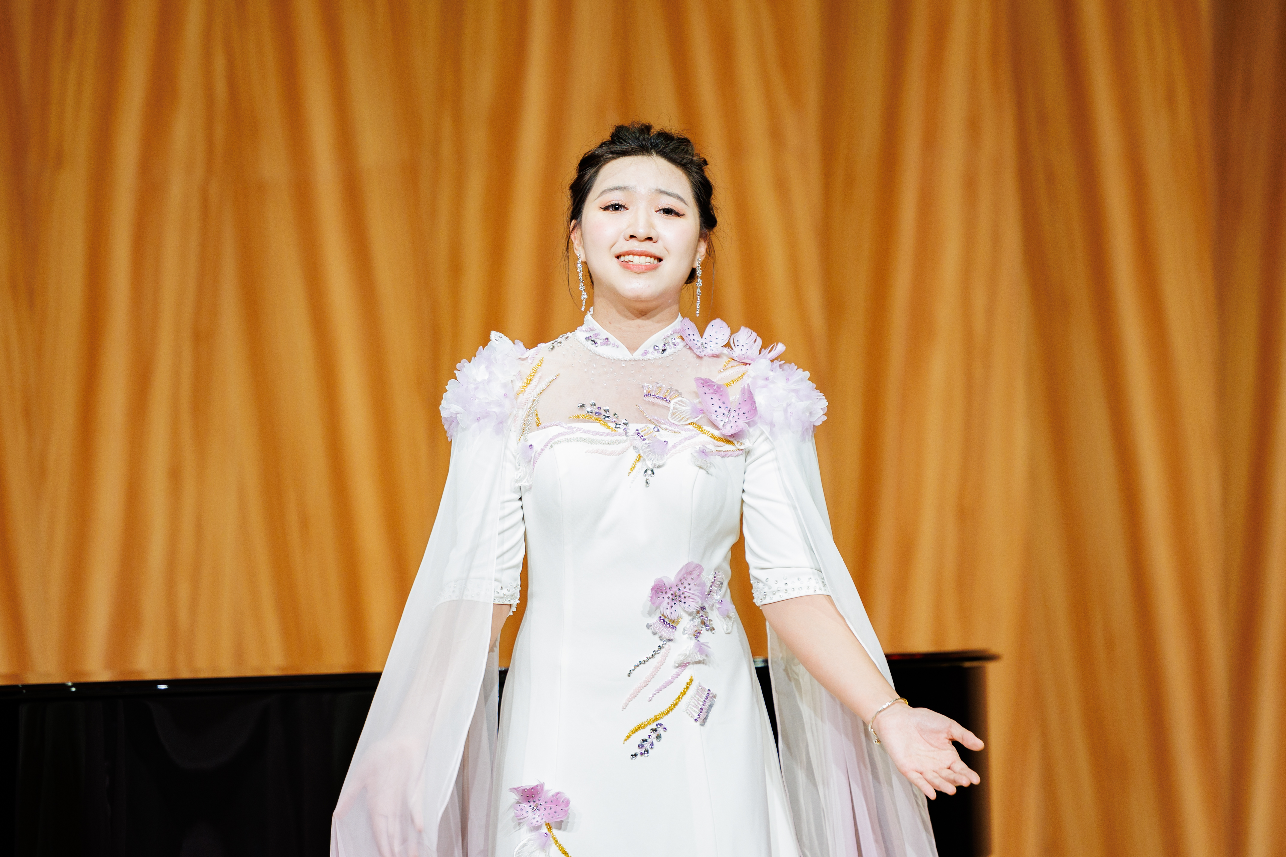 《念奴娇·赤壁怀古》以豪放词风为蓝本,展现出历史的厚重与英雄气概。《忆伊人》传递深情的思念,而《祖国,慈祥的母亲》则以激昂的旋律和深情的歌词,表达对祖国的热爱与敬仰。《江畔独步寻花》则以清新雅致的旋律勾勒出春日江畔的诗意。接着一首《不答应也得答应》旋律动感,歌词直白,充满了戏剧张力。最后的流行乐《forever young》曲调轻松,洋溢着青春的热情欢快。钢琴伴奏陈梓丹的精准细腻演奏,为整场音乐会增添丰富的情感与层次。