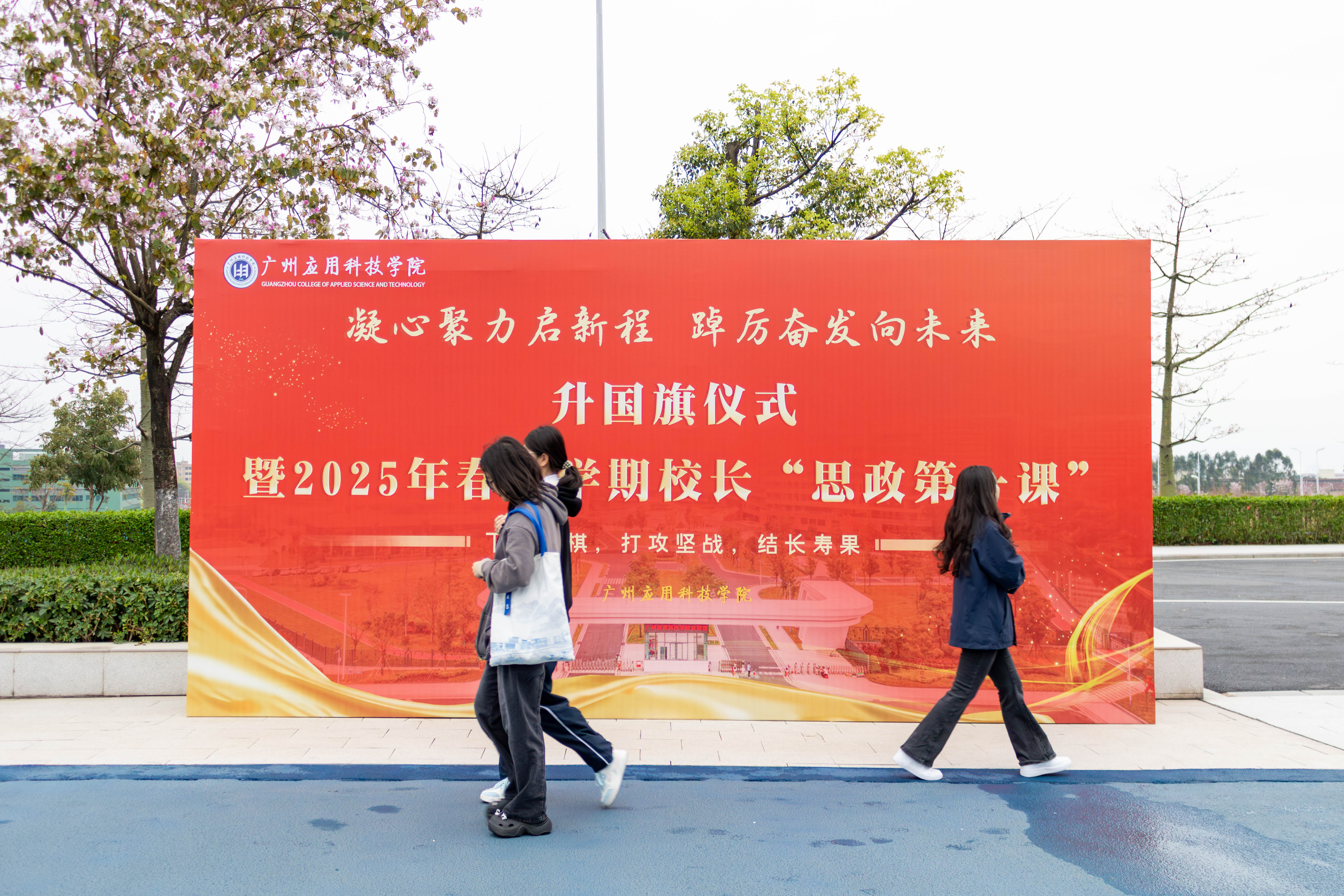 岁序更替,华章日新。3月18日早晨7点半,广州应用科技学院举行2025年春季学期首次主题式升国旗仪式。张光宇校长、刘志新副校长带领师生代表齐聚国旗下,共同见证这一庄严时刻。