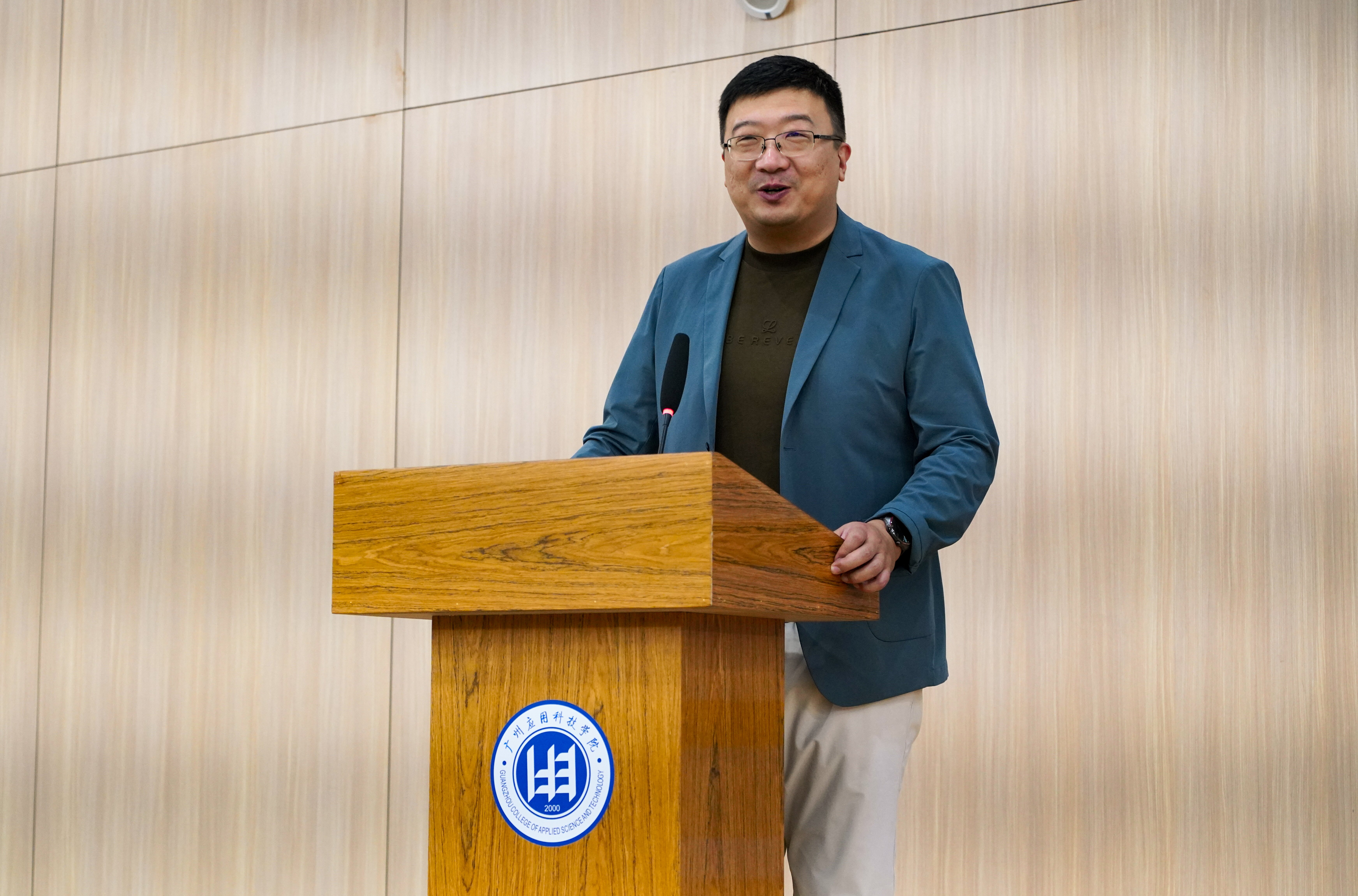 新东方集团副总裁兼国际教育培训事业部总裁刘烁炀在致辞中在致辞中表示,希望新东方与广州应用科技学院强强联手,共同为学生搭建国际化教育体系,开启育才新篇章。他通过一张正态分布图和与会的学生分享,如果未来有一次升学机会,要努力向着更好更适合自己的方向出发。在AI兴盛的时代,知识获取变得便捷,同学们需要具备较强的思辨能力,并明确在何处能培养这种能力。刘烁炀总裁分享了“决策”、“路径”和“评价”三个关键词,鼓励同学们明确目标、做好规划,并理性看待留学选择,寻找适合自己的发展道路。