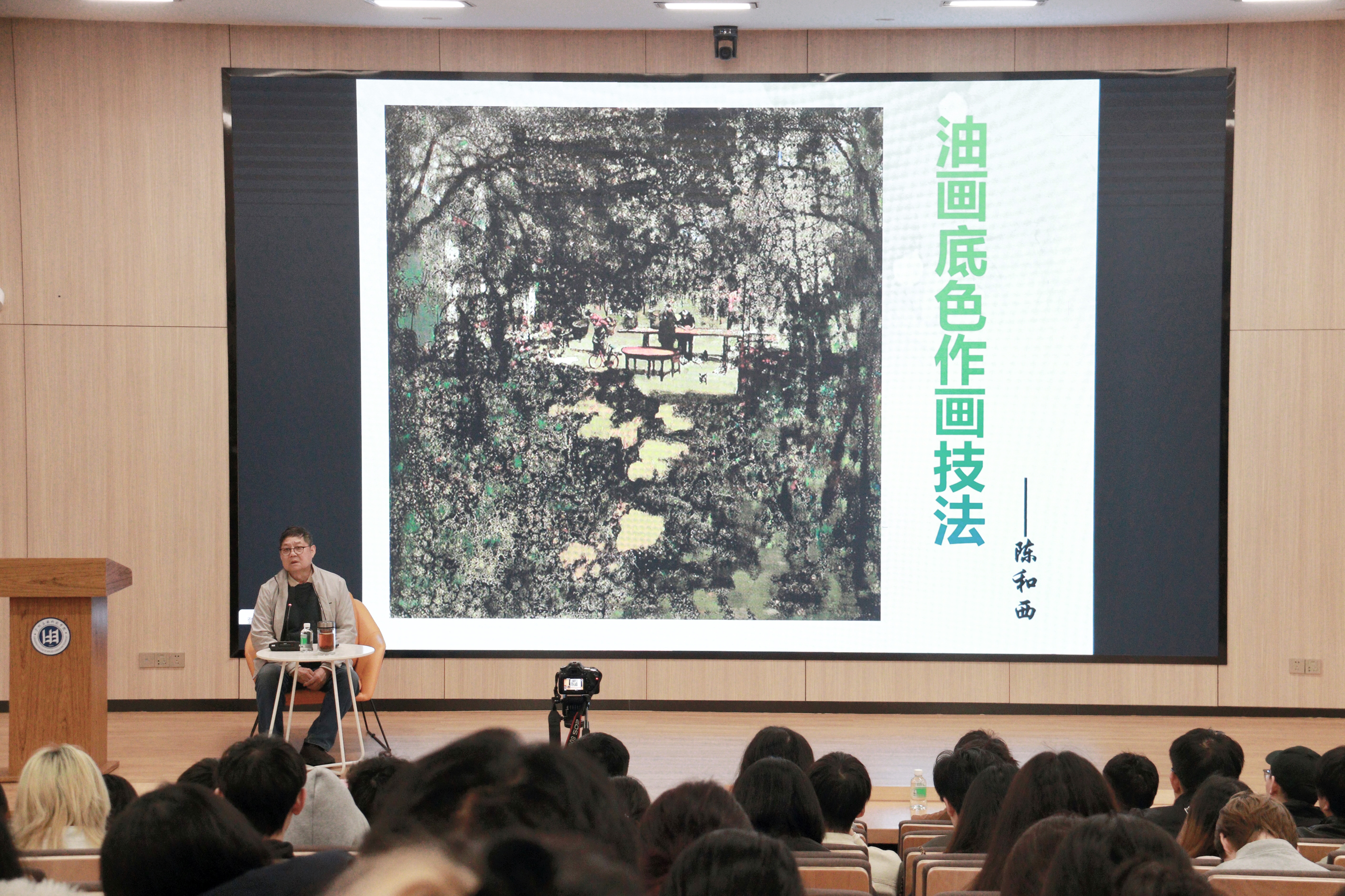 3月31日下午,“百越大讲堂”第五十讲在图书馆一楼报告厅举行,湖南师范大学美术学院教授、博士生导师陈和西应邀为我校师生作《油画底色上的作画技法》专题讲座。广州应用科技学院美术创意学院院长贺锋林、党委书记邓铨、副院长孙强以及300余名师生参加讲座,讲座由贺锋林院长主持。