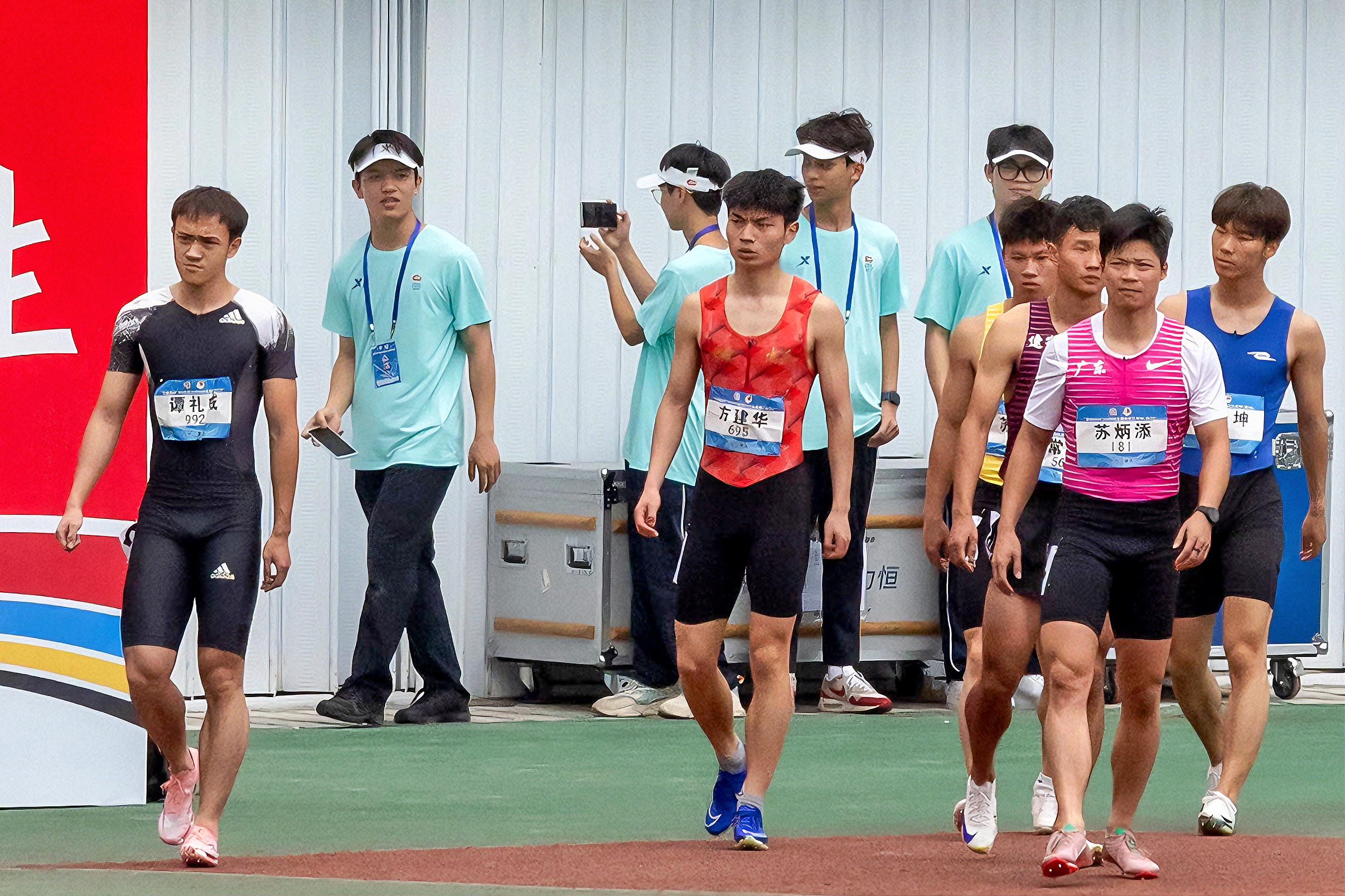 4月11日,2025年全国田径大奖赛的男子100米预赛正式鸣枪开跑,当15组的苏炳添站上第四道时,面向跑道的观众席人头攒动,全场起立为之欢呼。“亚洲飞人”苏炳添以矫健身姿划过肇庆市体育中心的红色跑道,广州应用科技学院120名学生志愿者共同见证了中国田径史上的特殊时刻——这位36岁的传奇运动员在2025年全国田径大奖赛首站中,以10秒49的成绩完成职业生涯最后一次赛季百米首秀。