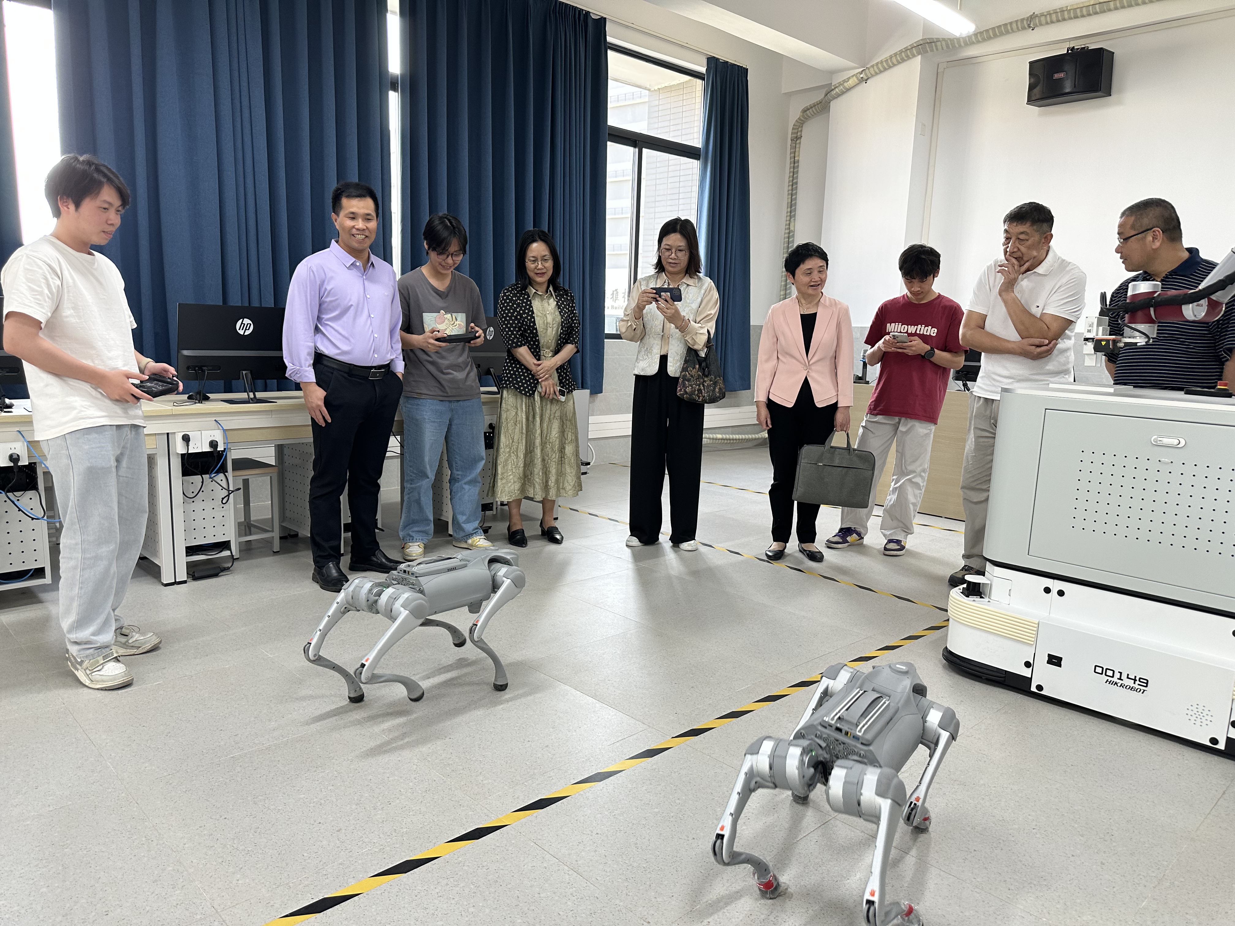 龙志副院长首先对区政协领导一行表示热烈的欢迎,并详细汇报了学院在智能课程设计、实践教学、师资队伍建设、智能实验设备更新等工作。黄彩英副主席一行认真听取了学院在智能实验室建设、学科竞赛等方面取得的成果和未来发展面临的瓶颈等。黄彩英副主席强调,要将学生职业发展需求放在首位,加快人工智能布局应用是推动区域产业升级、服务高质量发展的关键。她指出,政协将充分发挥自身职能,协调各方资源,助力学院发展。进一步推动学院与本地企业合作共建,引入企业项目,让学生在实践中成长,为区域人工智能产业发展输送更多优质人才。