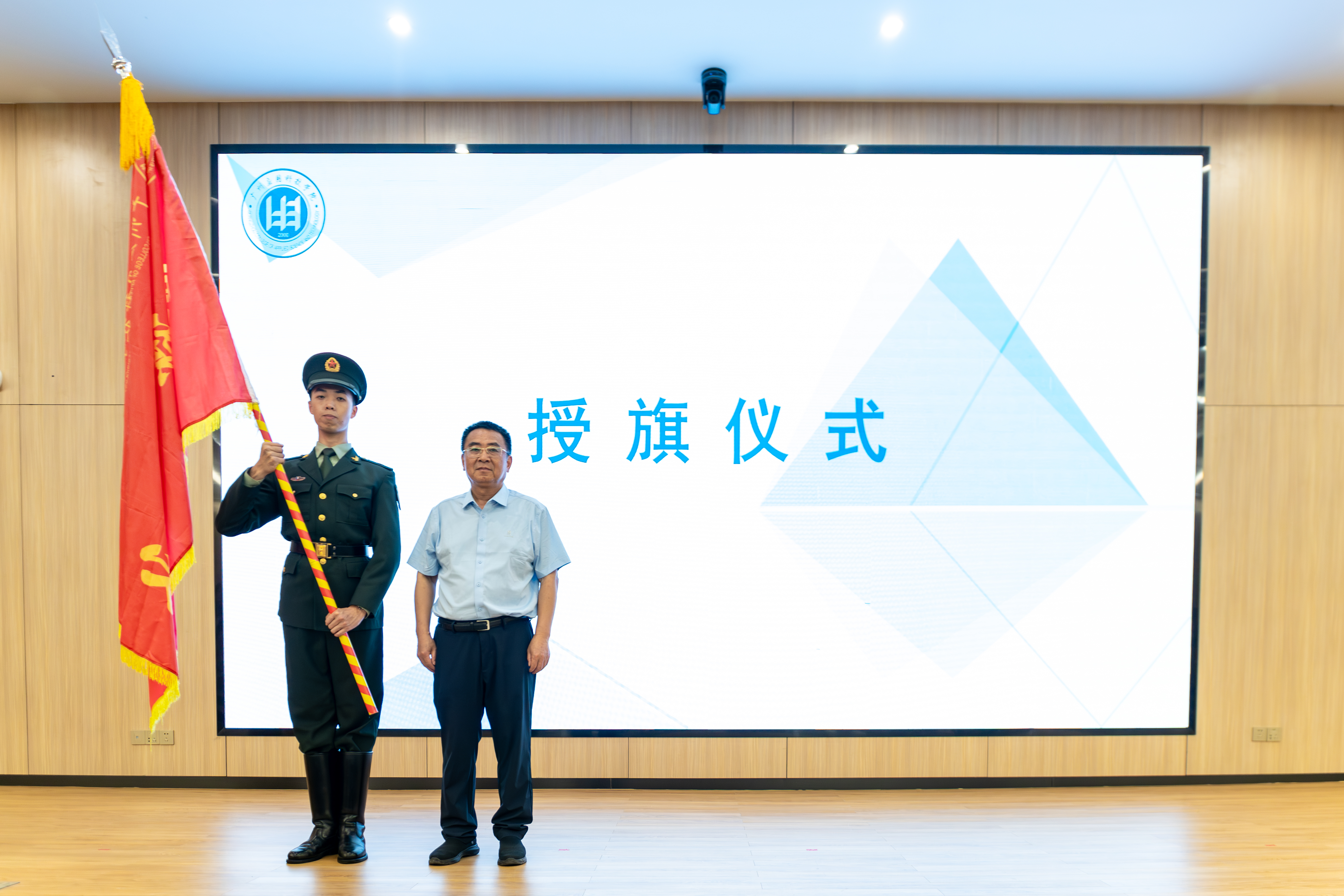 会上,我校党委书记陈光团为国旗护卫队授旗,并作动员讲话。他代表学校党政领导班子,向入选国旗护卫队的队员致以崇高的敬意,向一直支持训练的指导老师和后勤工作人员表示衷心的感谢!陈光团书记指出,国旗是国家的象征,护卫国旗意义重大。广州应用科技学院作为“广东省国防教育特色学校”,牢记为党育人、为国育才使命。我校国旗护卫队深入学习习近平新时代中国特色社会主义思想和习近平强军思想,构建起坚定的理想信念、强烈的使命担当和忠诚于党、忠诚于国家、忠诚于人民的思想基础,同时,将理论学习与国旗文化、爱国精神紧密结合,通过庄严的国旗升降仪式、丰富的爱国主义教育活动等形式,培养师生无限忠诚、绝对忠诚的优良品质。陈光团书记表示,即将到来的全省高校国旗护卫队比赛,是对我校国旗护卫队训练成果的一次重要检验,更是展现国旗护卫队精神风貌、学校精神风貌的窗口。他希望全体队员能够以饱满的热情、昂扬的斗志投入到比赛中,并对队员们提出三点期望:一是要树立信心;二是要保持平常心;三是要发扬团队精神。陈光团书记期待我校国旗护卫队在比赛中取得优异成绩,载誉而归,为学校再添光彩。