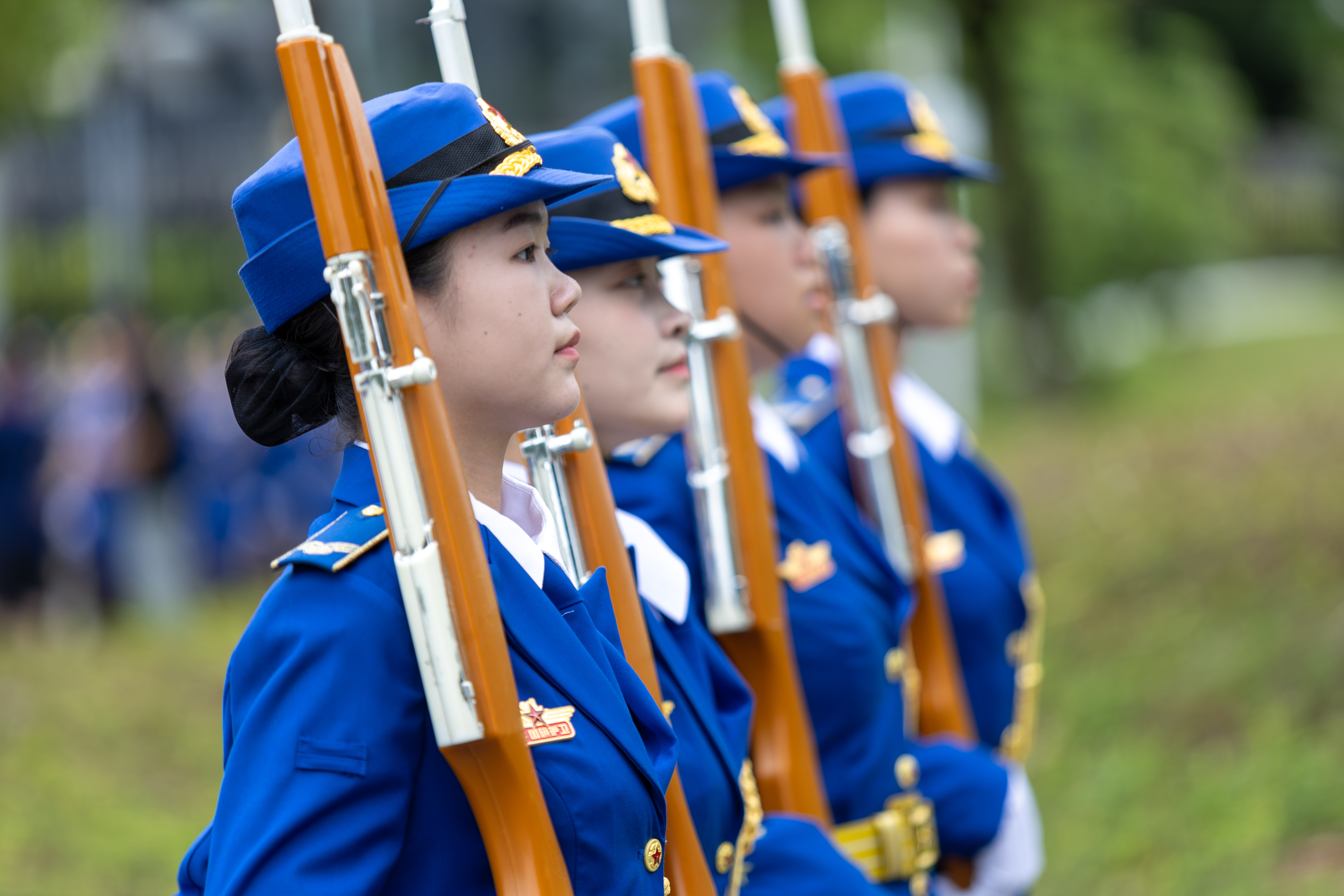 从出发线到升旗台60米的距离,需用80步丈量。在这个比赛现场的特定时刻,每一步都踏得坚实有力。这80步,是28位队员用60余天艰苦训练练就的“信仰标尺”,每一步都在向历史致敬,向未来宣誓。