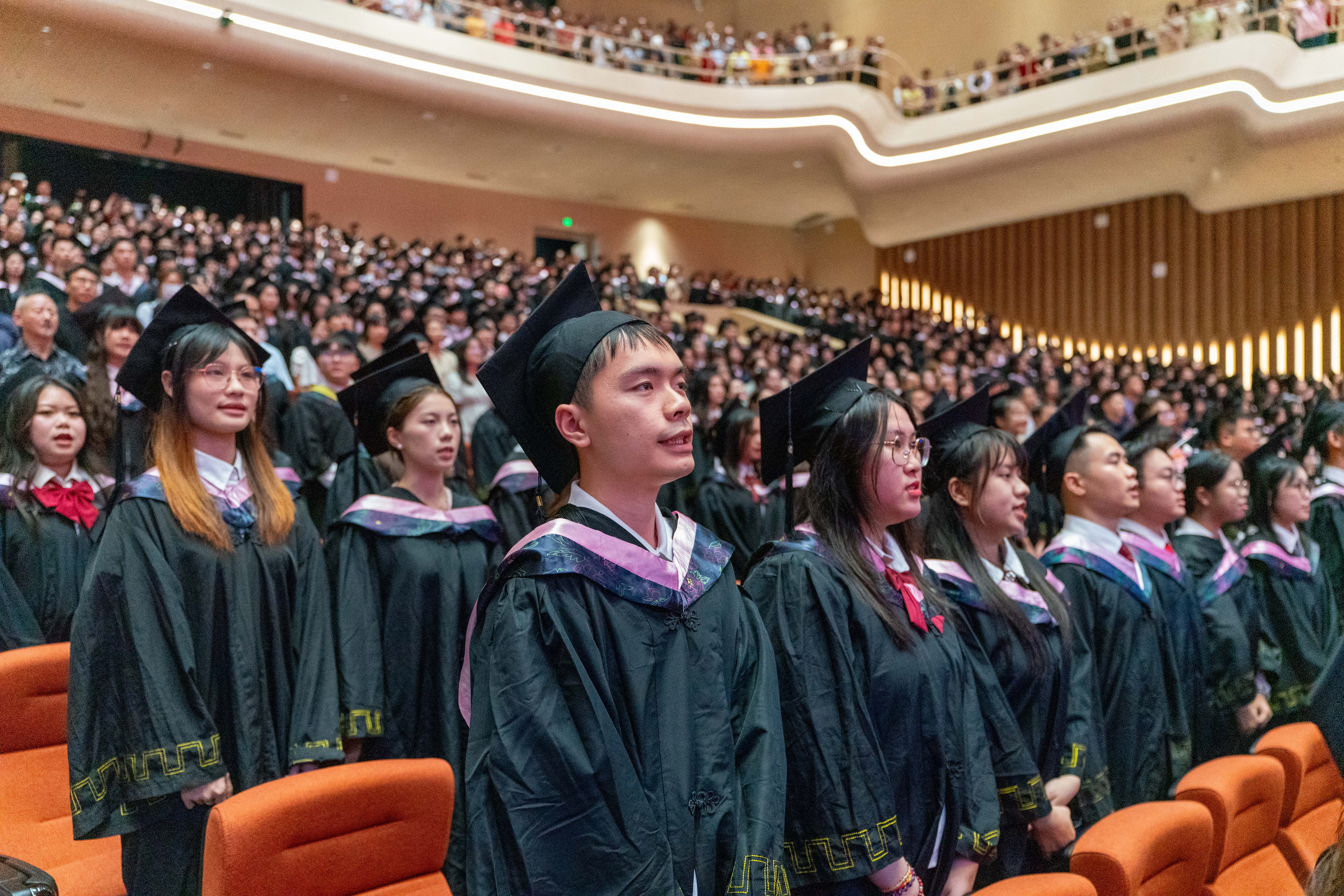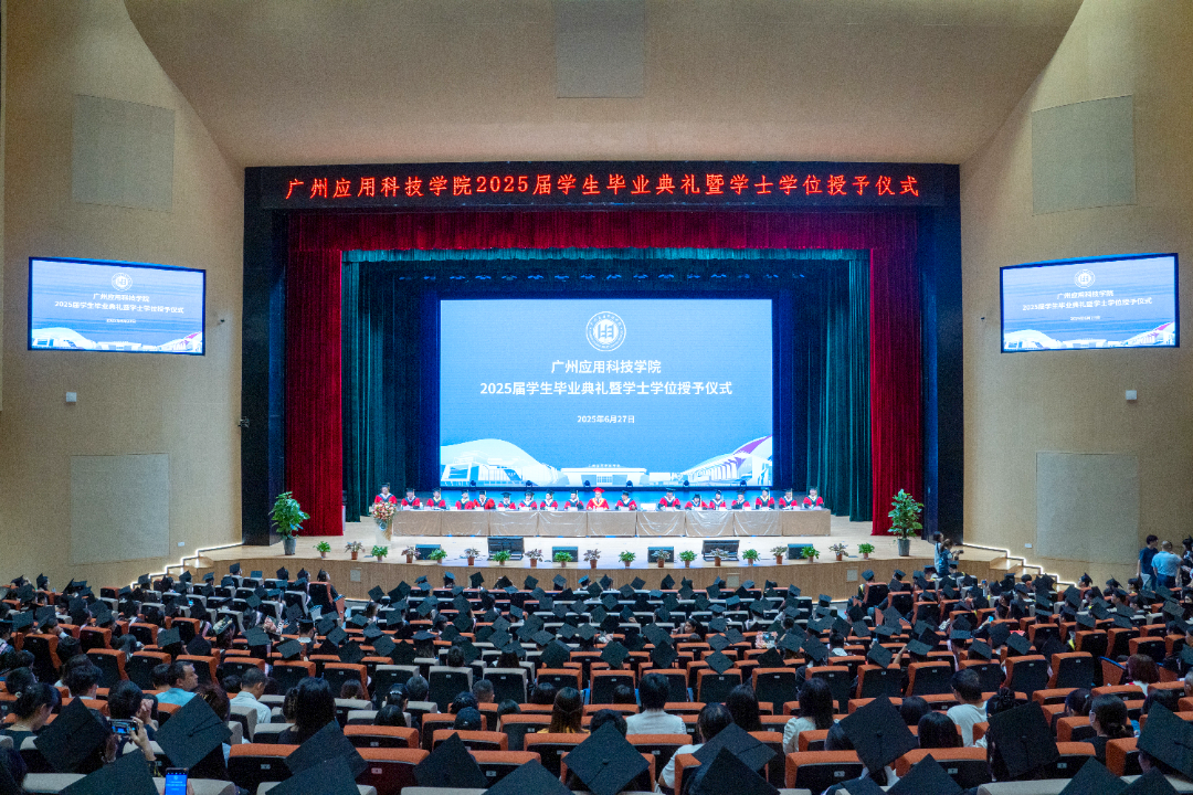 凤凰花开季,骊歌唱响时。2025年,对广州应用科技学院而言,意义非凡——学校迎来建校25周年华诞,亦是成功转设更名5周年的重要里程碑。6月27日上午,广应科在学校莲花大剧院举行2025届学生毕业典礼暨学士学位授予仪式,深情欢送8926名学子踏上人生新征程。尤为特别的是,2025届毕业生是学校转设更名后招收的首届普通高考学生,同时也是肇庆校区迎来的首届普高毕业生。他们不仅亲历了肇庆校区从蓝图变为现实的壮阔历程,更在此度过了求知探索、淬炼成长的黄金四年,与母校共同书写了崭新的篇章。