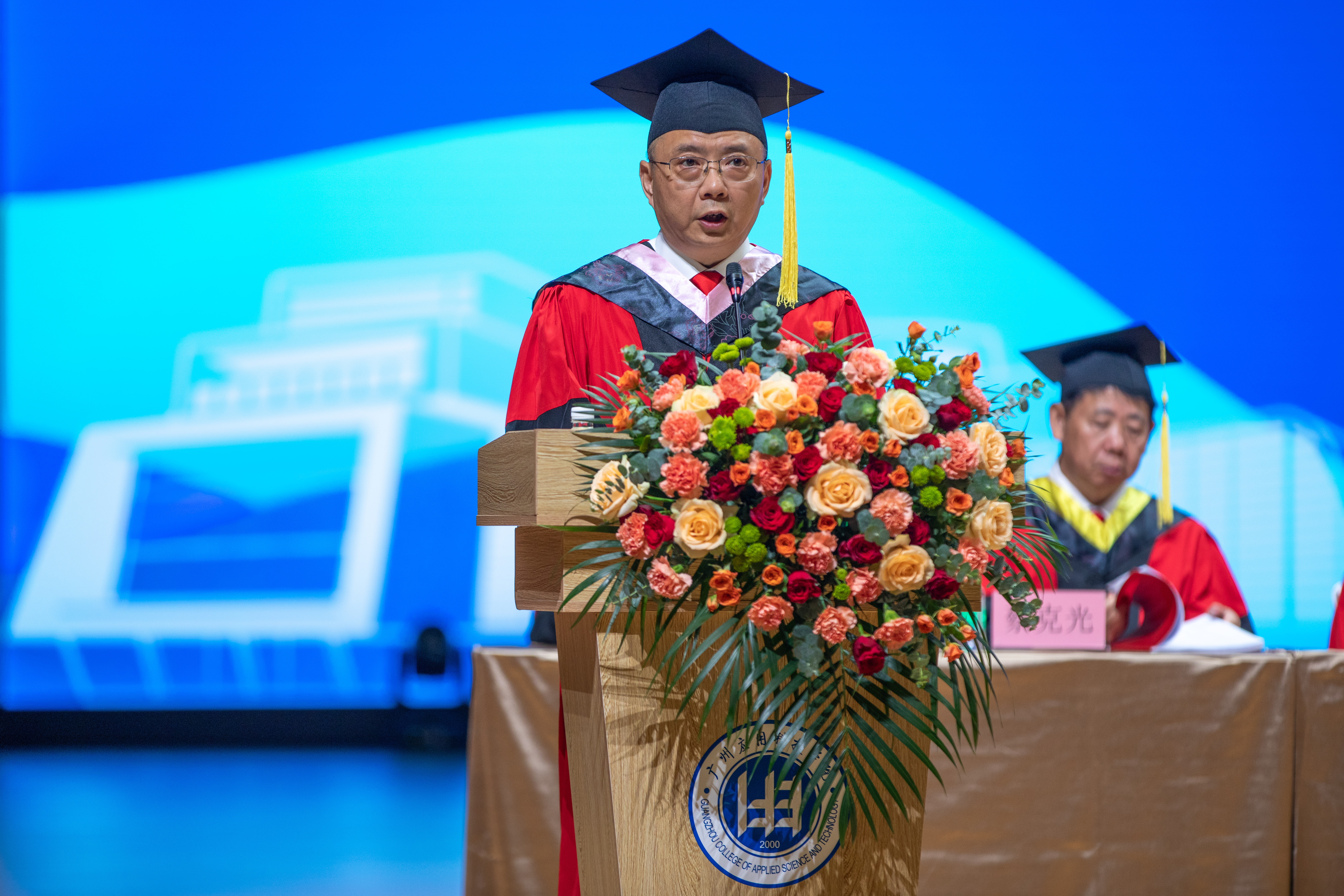 校党委书记陈光团宣读了《广州应用科技学院关于表彰2025届优秀毕业生的决定》,对品学兼优的学子予以嘉奖。校长张光宇为优秀毕业生代表颁奖。常务副校长吴舸先后宣读了《广州应用科技学院关于准予倪志锐等8796名全日制本科学生毕业的决定》及《广州应用科技学院关于授予倪志锐等8796名全日制本科毕业生学士学位的决定》,标志着学子们圆满完成学业。
