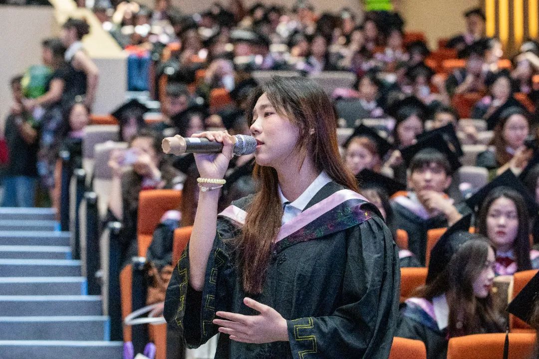 典礼开始前,音乐学院的学子们以一场精心编排的暖场表演,用歌声为学长学姐送上最真挚的祝福。《你曾是少年》《纪念》《那些年》《凤凰花开的路口》等满载青春记忆的旋律悠扬响起,瞬间将现场带回四载春秋的点点滴滴。熟悉的歌词诉说着过往,婉转的曲调萦绕着离愁,不少毕业生眼泛泪光,纷纷举起手机,记录下这难忘的瞬间,沉浸在对广应科岁月深深的眷恋与温暖的青春氛围中。
